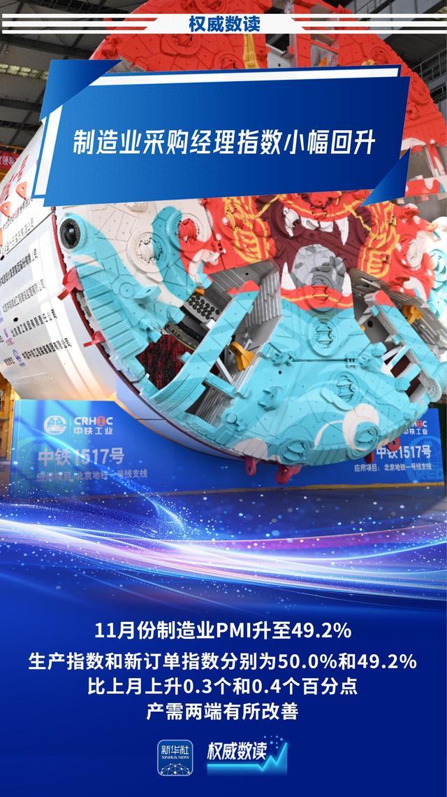 国家统计局服务业调查中心、中国物流与采购联合会30日发布11月份中国采购经理指数,数据显示,11月份制造业采购经理指数(PMI)为49.2%,比上月上升0.2个百分点。其中,小型企业PMI为49.1%,为近6个月高点,景气水平显著回升。跟随海报,一起了解下。