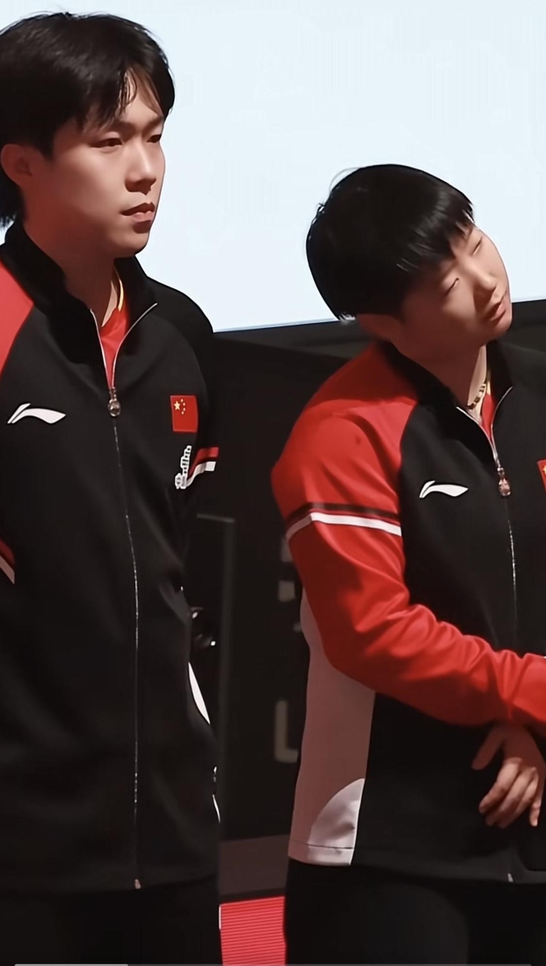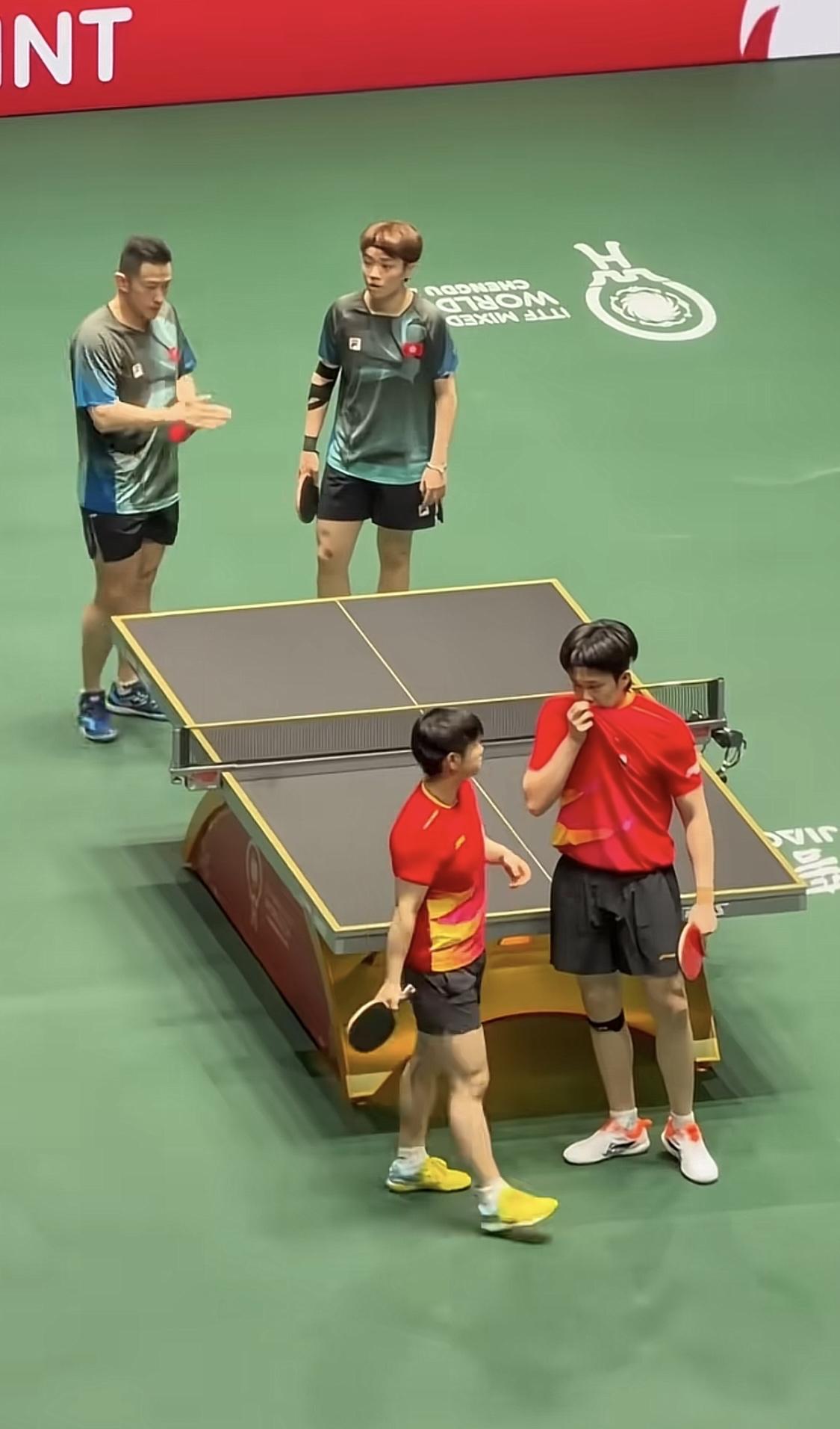 王楚钦和孙颖莎这对天选混双,第一阶段成都比赛就趣事不断。这天生的同步率也太惊人。平时网友还发现他俩走路神同步,球场上很多动作也一致。这种默契可不是一天两天能训练出来的,别人想模仿都模仿不来。不得不说,这对组合真是赛场活宝,期待他们后续更多有趣瞬间。 跟香港队的比赛莎莎打出一个失误球,两个人懊恼地一个望天一个看地!