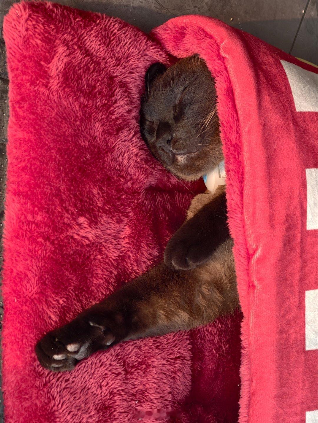 马哥在自己的小被窝里睡得脸都变形了它好舒服,好想送它去上班啊