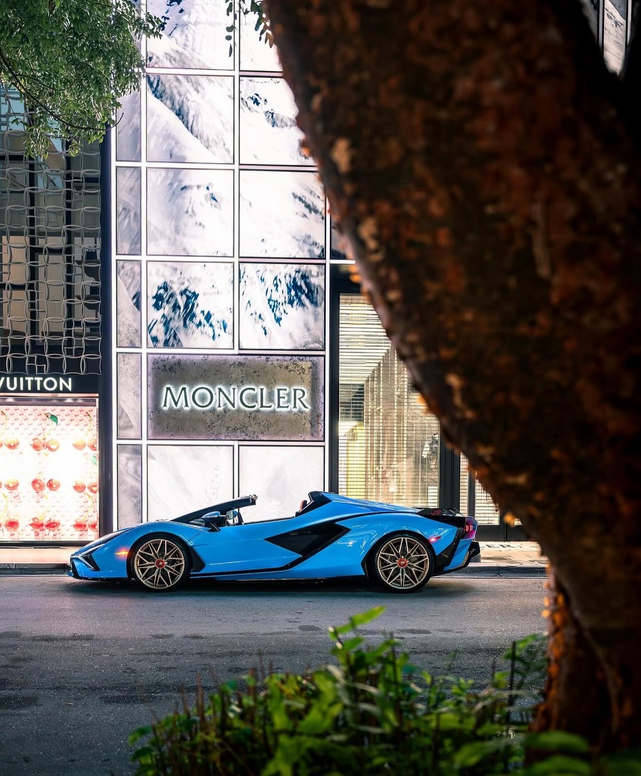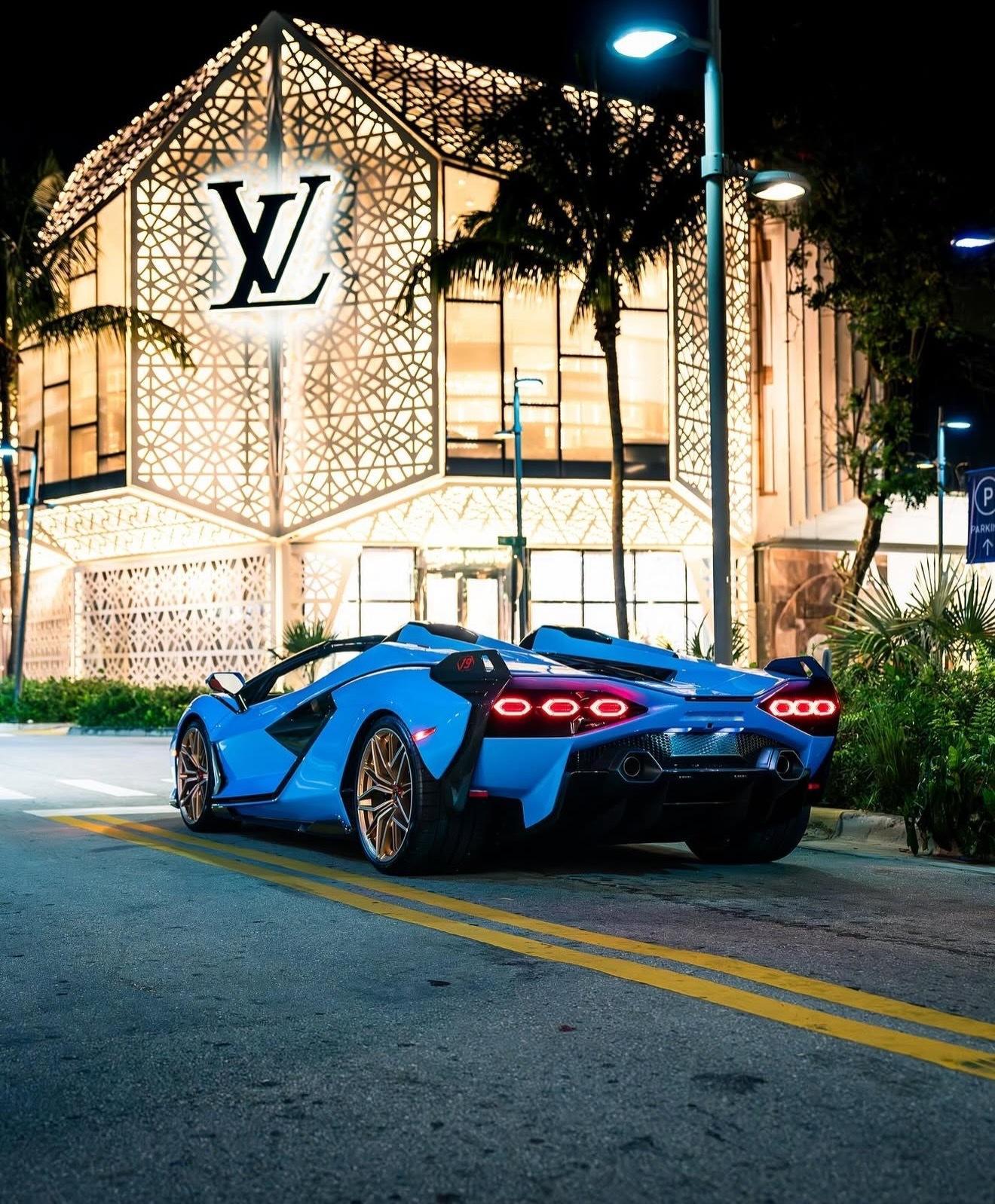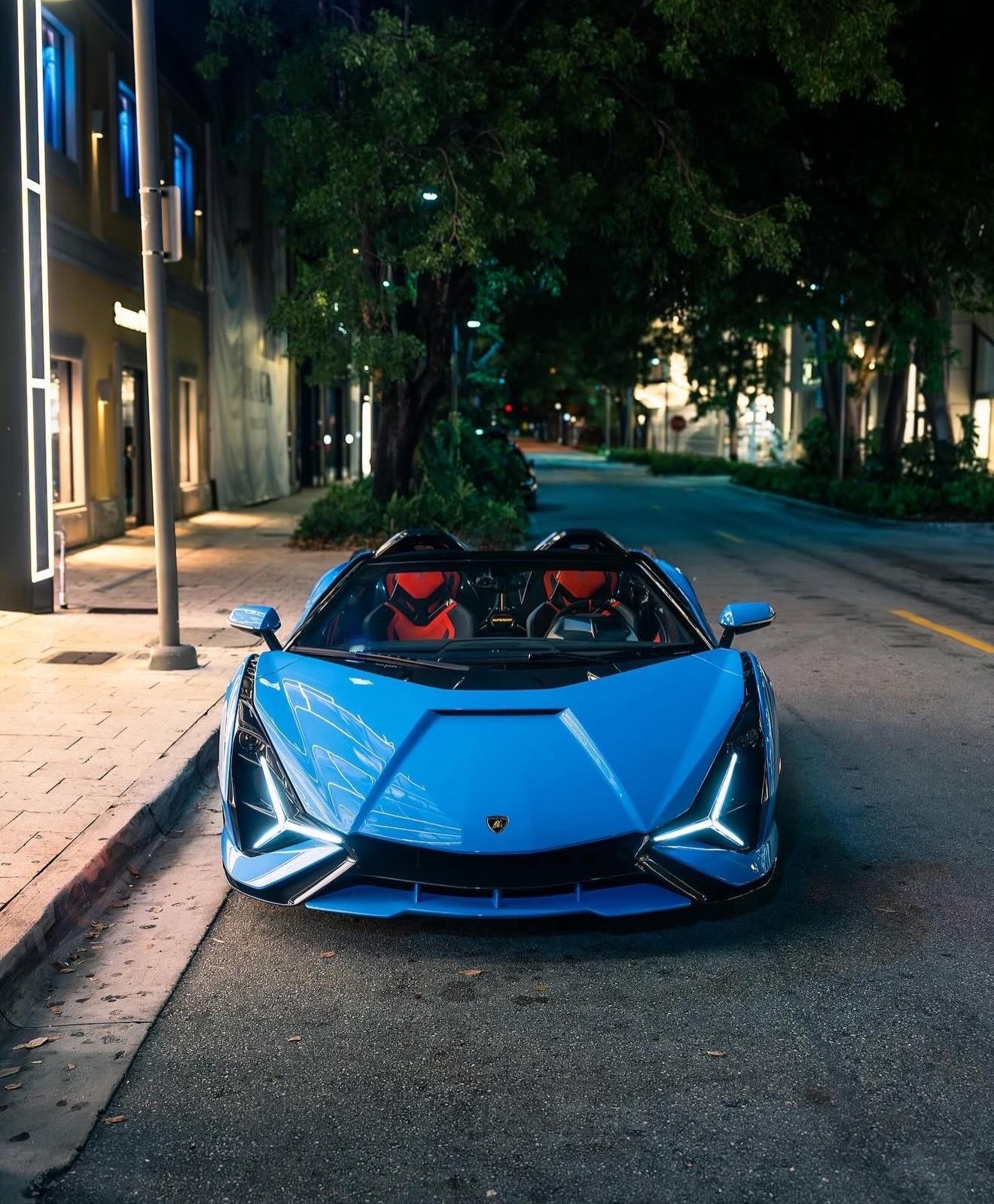 这个Blu Cepheus Sian Roadster车型配有金色轮毂、黑色刹车卡钳,以及黑色和红色的内饰。你对这样的配置有什么看法呢?..兰博基尼sian豪车超跑car时尚