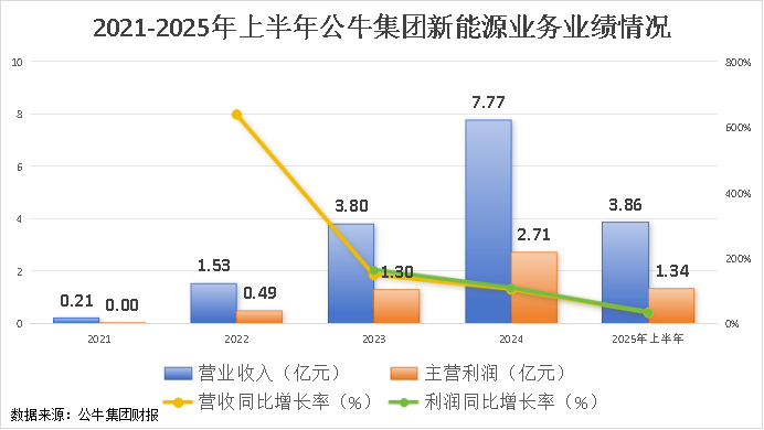 2025年上半年,在公司两大主营业务业绩下滑之时,其新能源业务实现营收3.86亿元,同比增长33.56%,是2021年整年的18.6倍。
