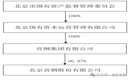 首钢股份与实际控制人之间的产权及控制关系的方框图如下,由图可见,控股股东为首钢集团有限公司,最终实际控制人为北京市国资委。