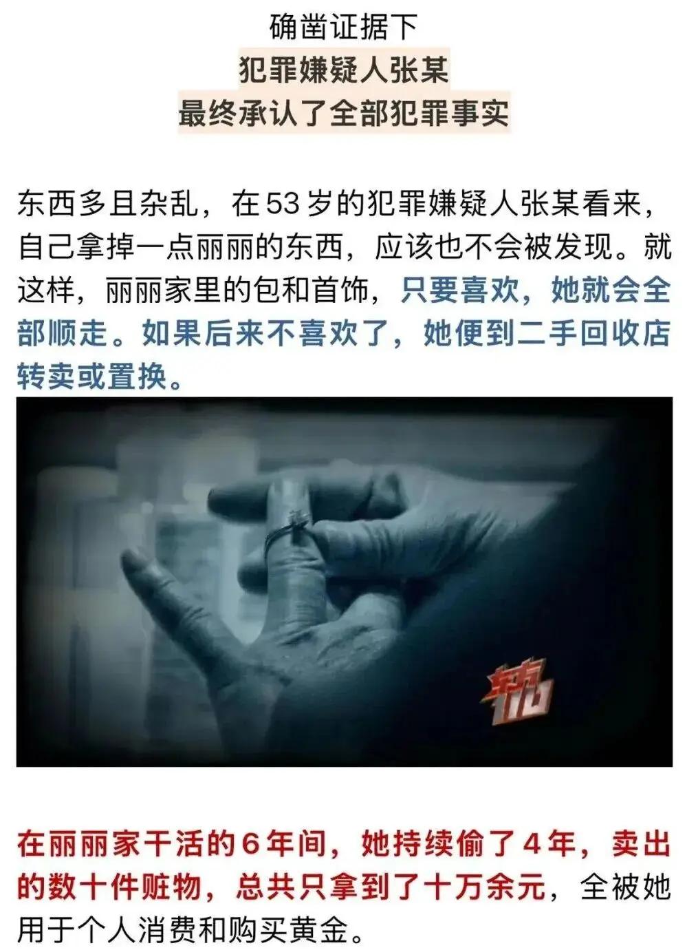 现实版《寄生虫》!钟点工偷雇主家4年,65万彩钻、奢侈品被搬空! 谁能想到,电影《寄生虫》的剧情会照进现实!上海丽丽家雇佣6年的钟点工张阿姨,竟“蚂蚁搬家”式偷了4年,65万彩钻、5块奢侈品手表全被卷走! 丽丽一家备战高考时,就发现家里巧克力莫名见底、头绳内衣丢失,可总觉得是小事隐忍了。直到今年准备拍亲子照,才发现两枚彩钻不翼而飞,查监控后直接崩溃:张阿姨趁干活时,频繁翻箱倒柜偷东西,连贵价瓷器刀叉都没放过! 警方调查发现,张阿姨把赃物卖给首饰店变现,其同伙黄某也被牵连。目前两人已被批准逮捕,可不少财物已无法追回。 雇佣钟点工真的要多留个心眼! 家庭安全 盗窃案例
