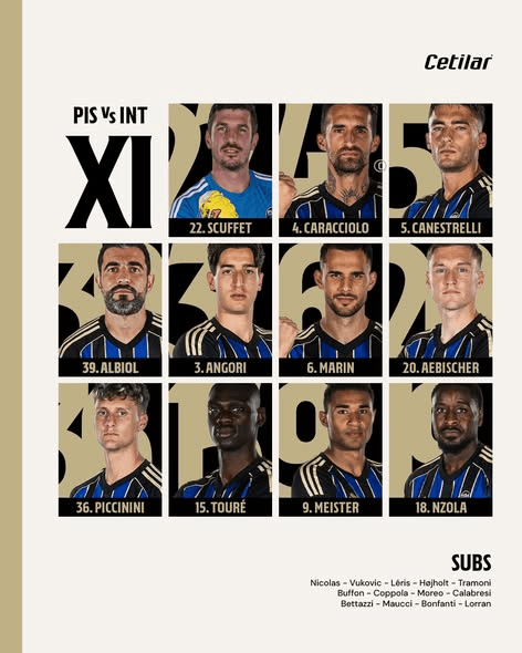 比萨首发:22-西蒙尼-斯库费特、4-卡拉西奥洛、5-卡内斯特雷利、39-阿尔比奥尔、3-安戈里、6-马里乌斯-马林、20-米歇尔-埃比舍尔、36-皮奇尼尼、15-图雷、9-迈斯特、18-恩佐拉