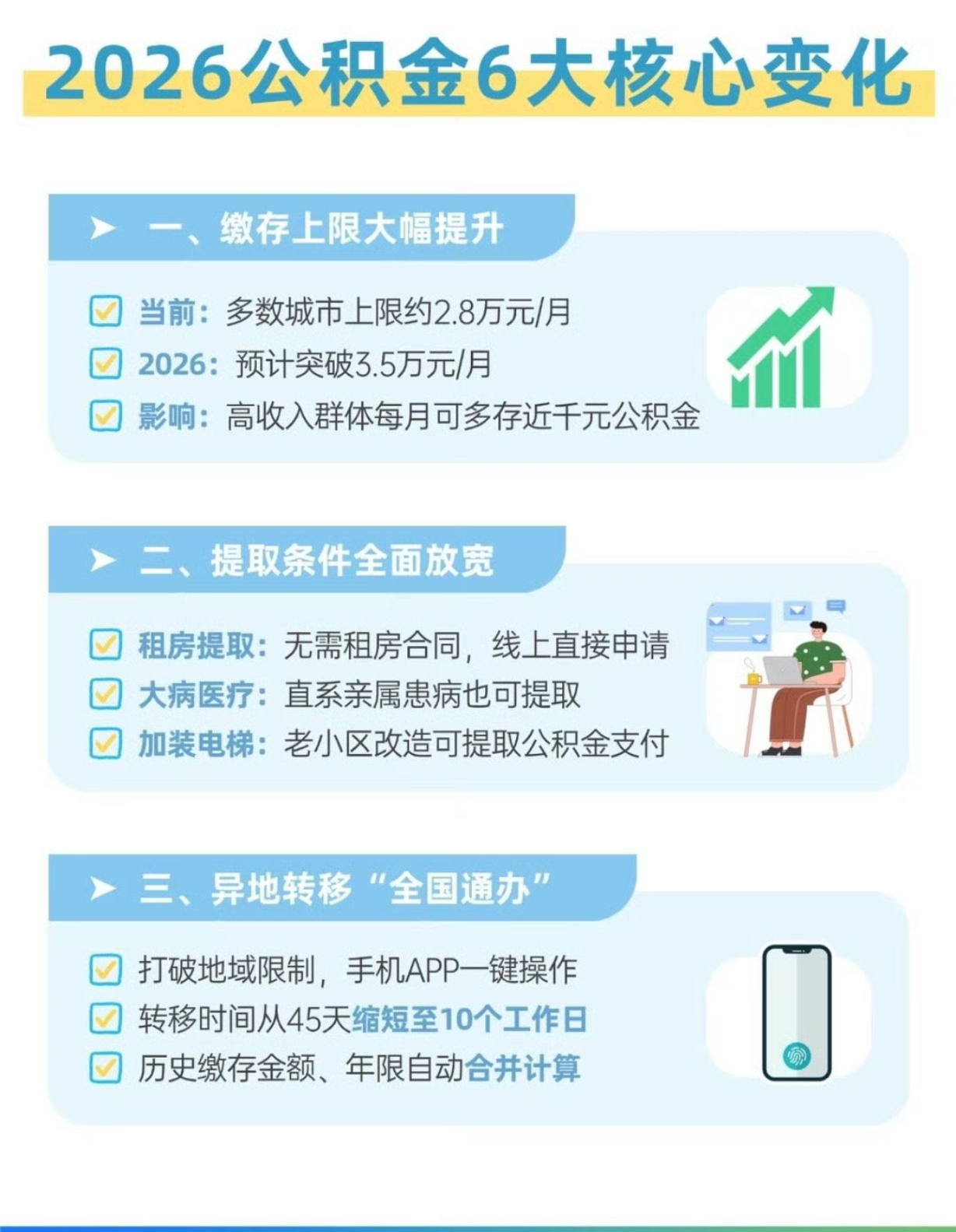 这次改革真的太懂民生痛点了!租房党不用再垫钱等报销,无房线上一键办,额度直接提;装修、改电梯不用再掏空积蓄,按平米就能取;家里有人重病,公积金能当救命钱,这才是制度该有的温度[5][6]。