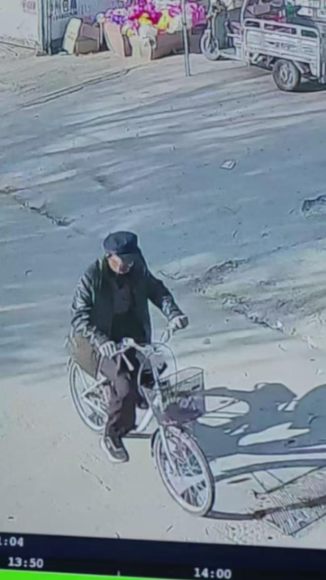 走失者特征:穿棕色皮衣、褐色裤子、运动鞋,戴黑色帽子,骑米色自行车高1米7,轻微驼背,患老年痴呆