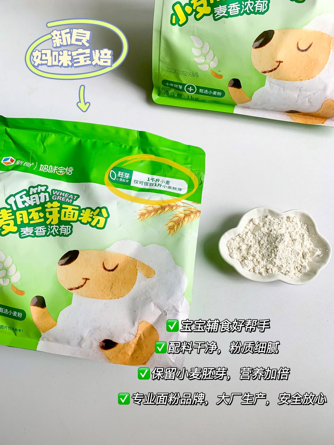 给宝宝做辅食用的面粉,既要安全可靠也要营养好吃,我用的是新良旗下营养面粉系列,妈咪宝焙低筋胚芽面粉,专业面粉品牌出品,大厂生产,给宝宝吃的安心~