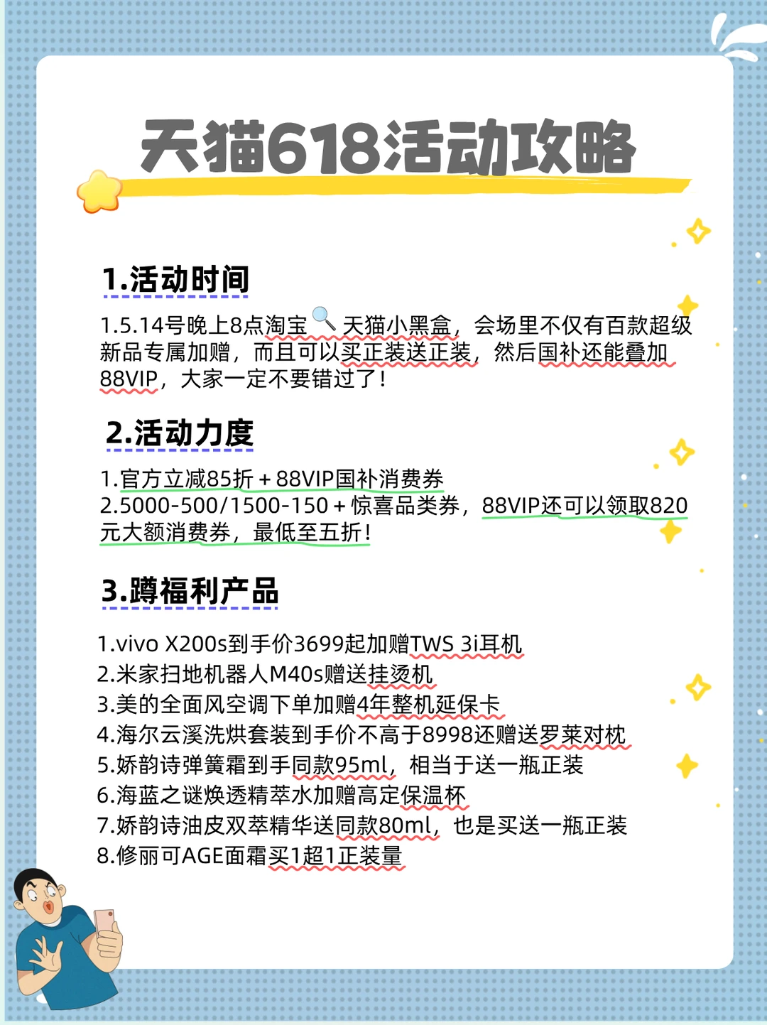 1⃣ 88VIP国补消费券满5000-500、满1500-150,美妆额外叠加惊喜券!