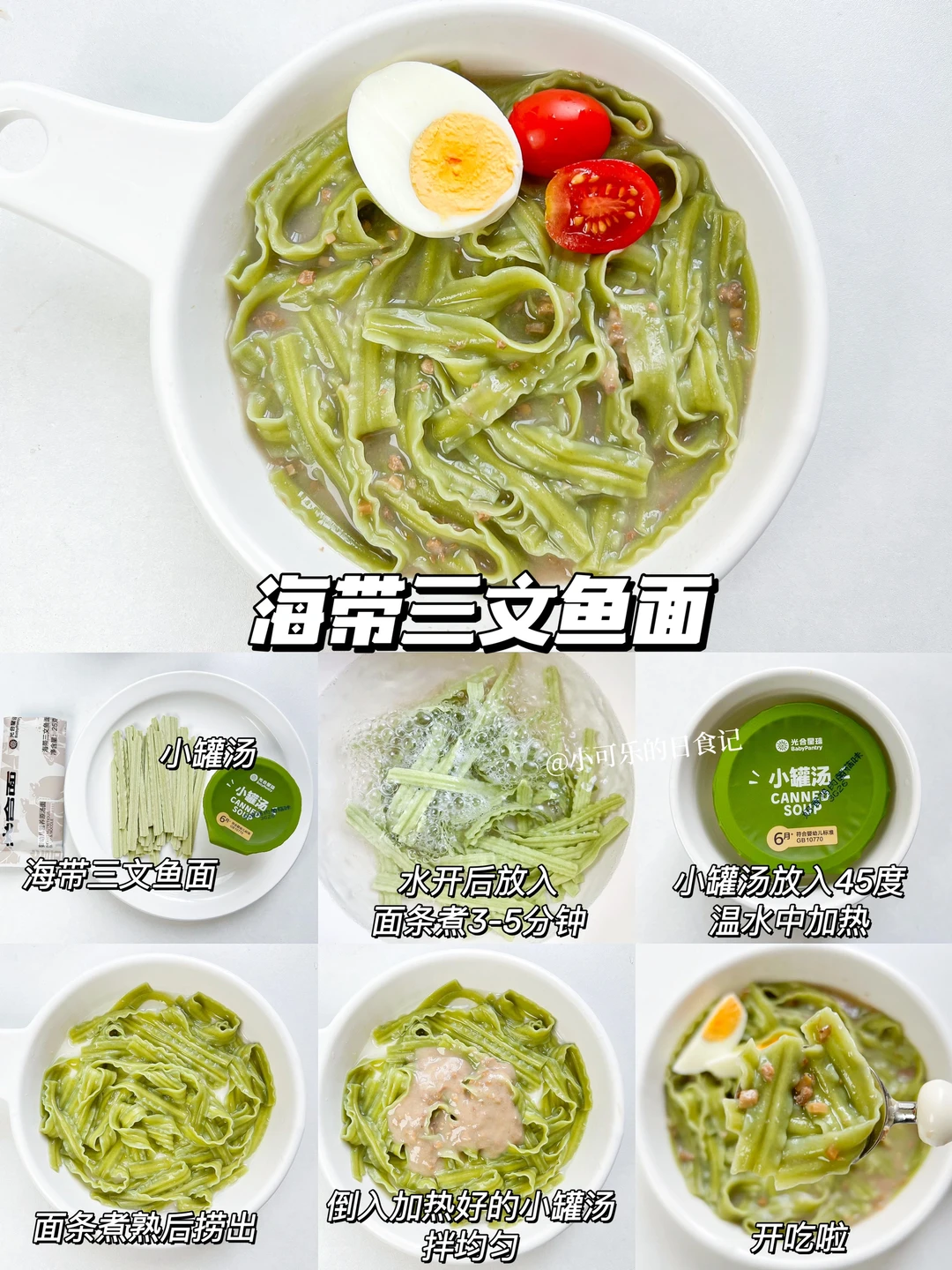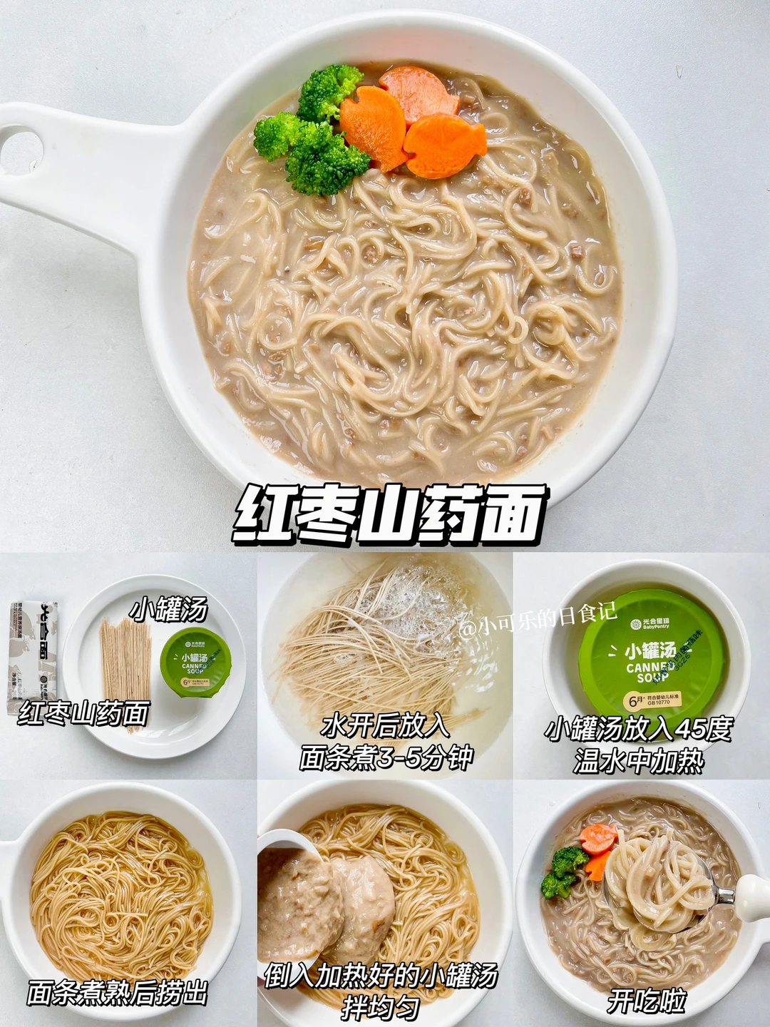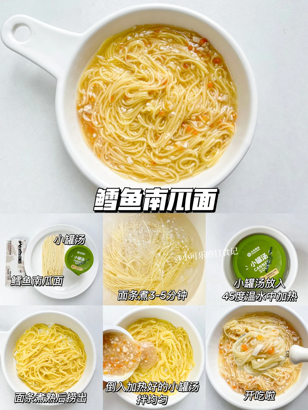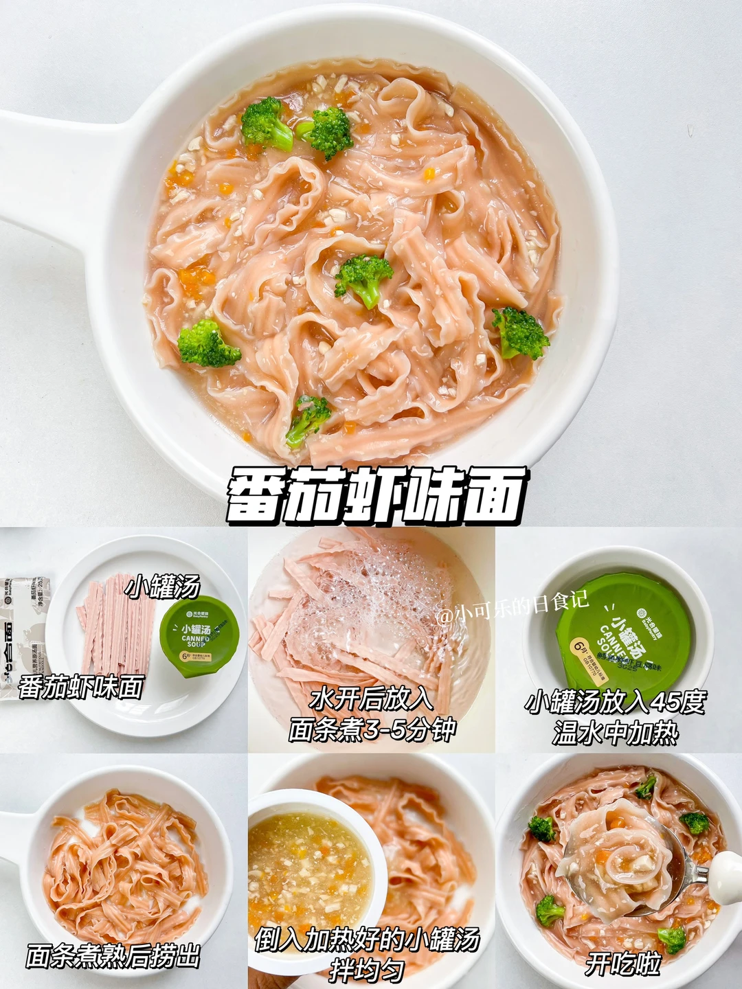 面条煮熟后捞出,倒入加热好的小罐汤,拌均匀就可以开吃啦