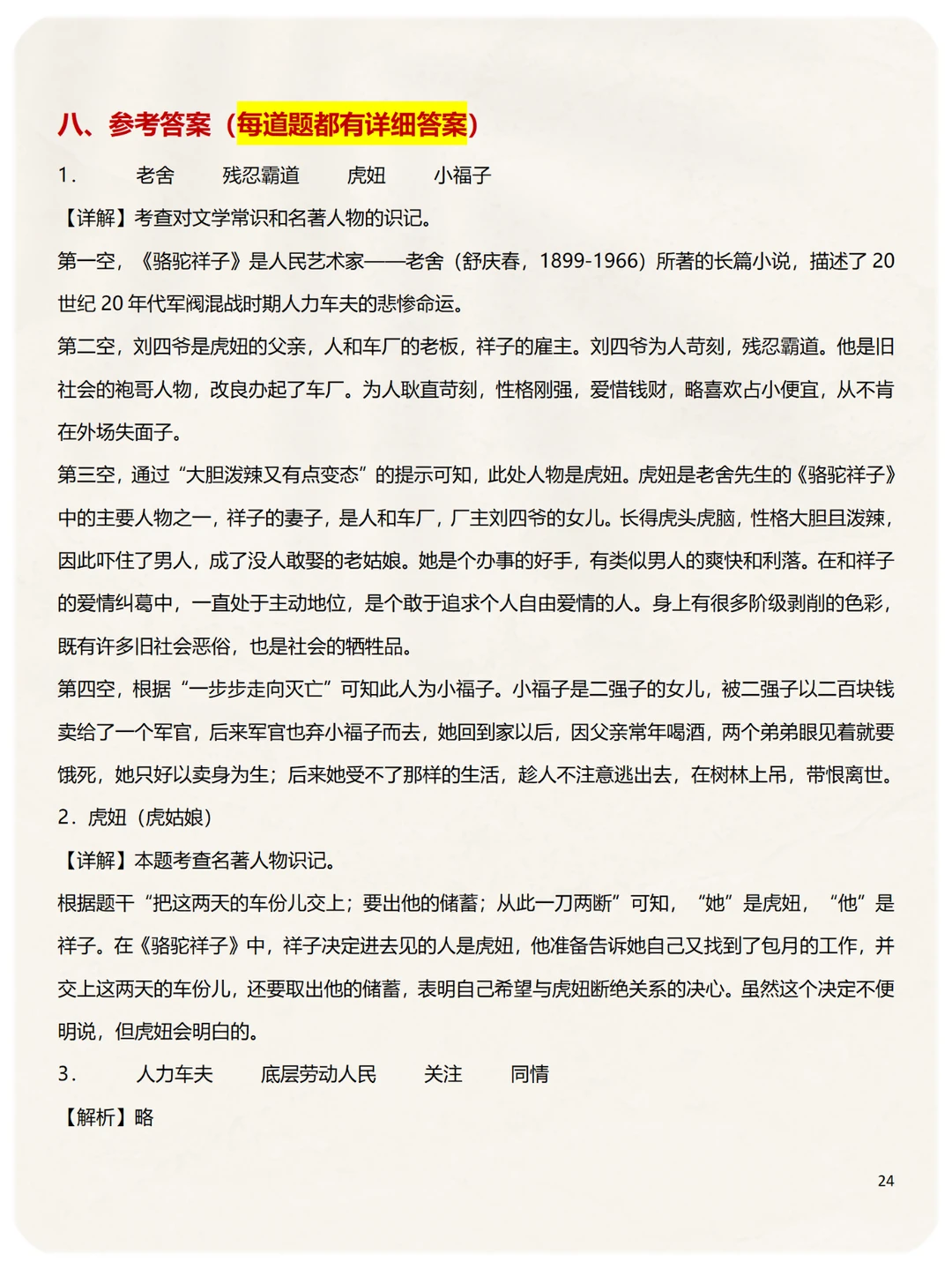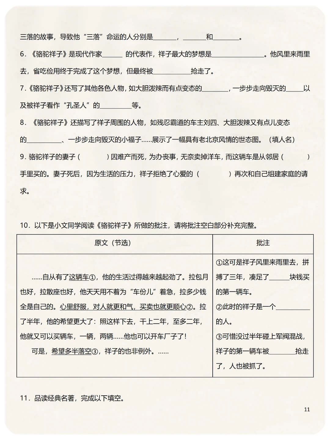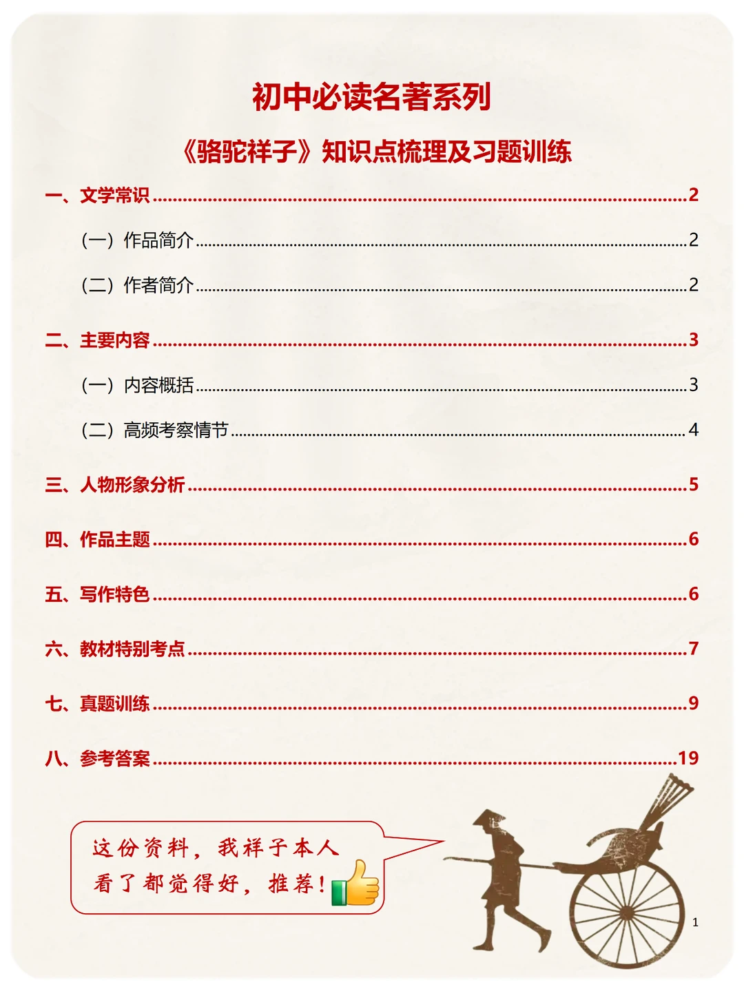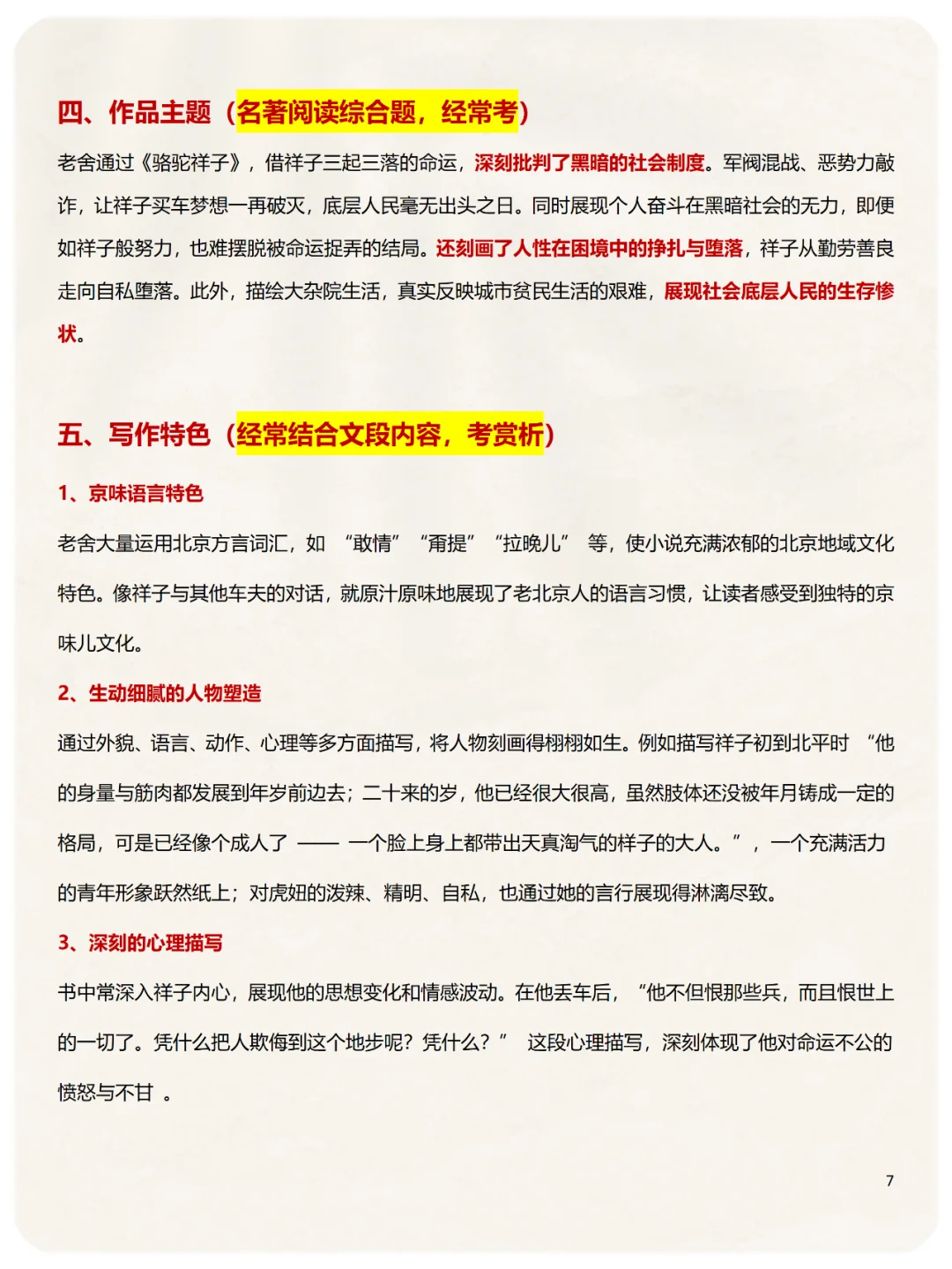 七年级下册语文必考名著《骆驼祥子》6类知识点必须要掌握