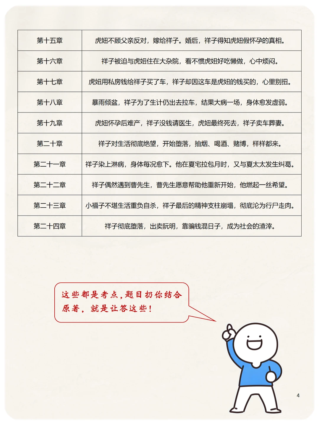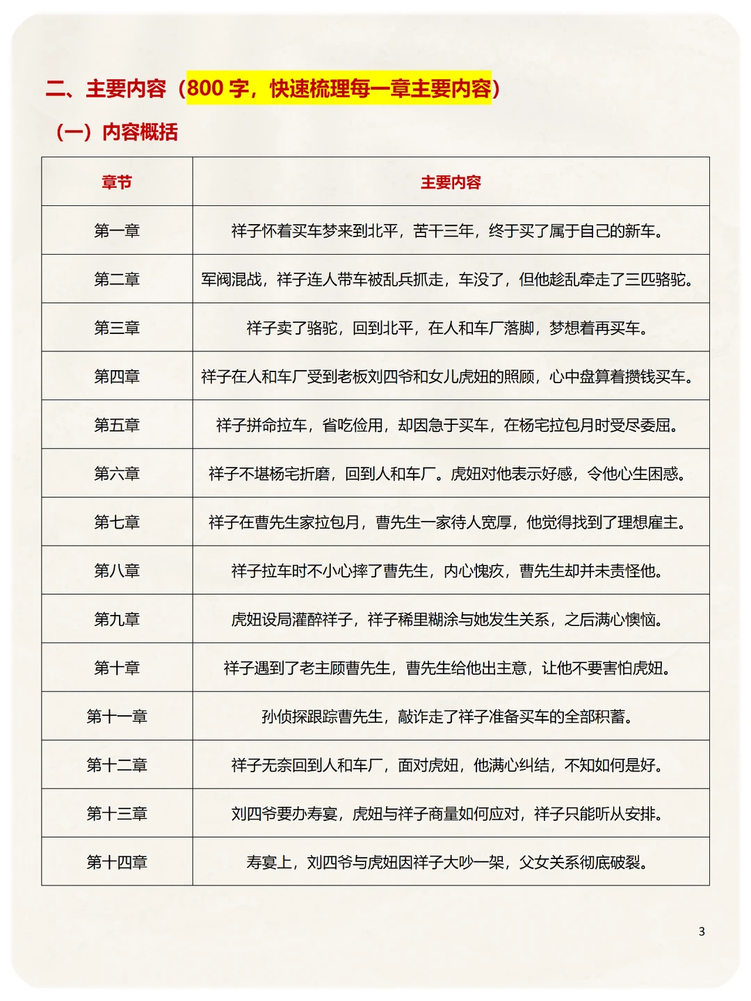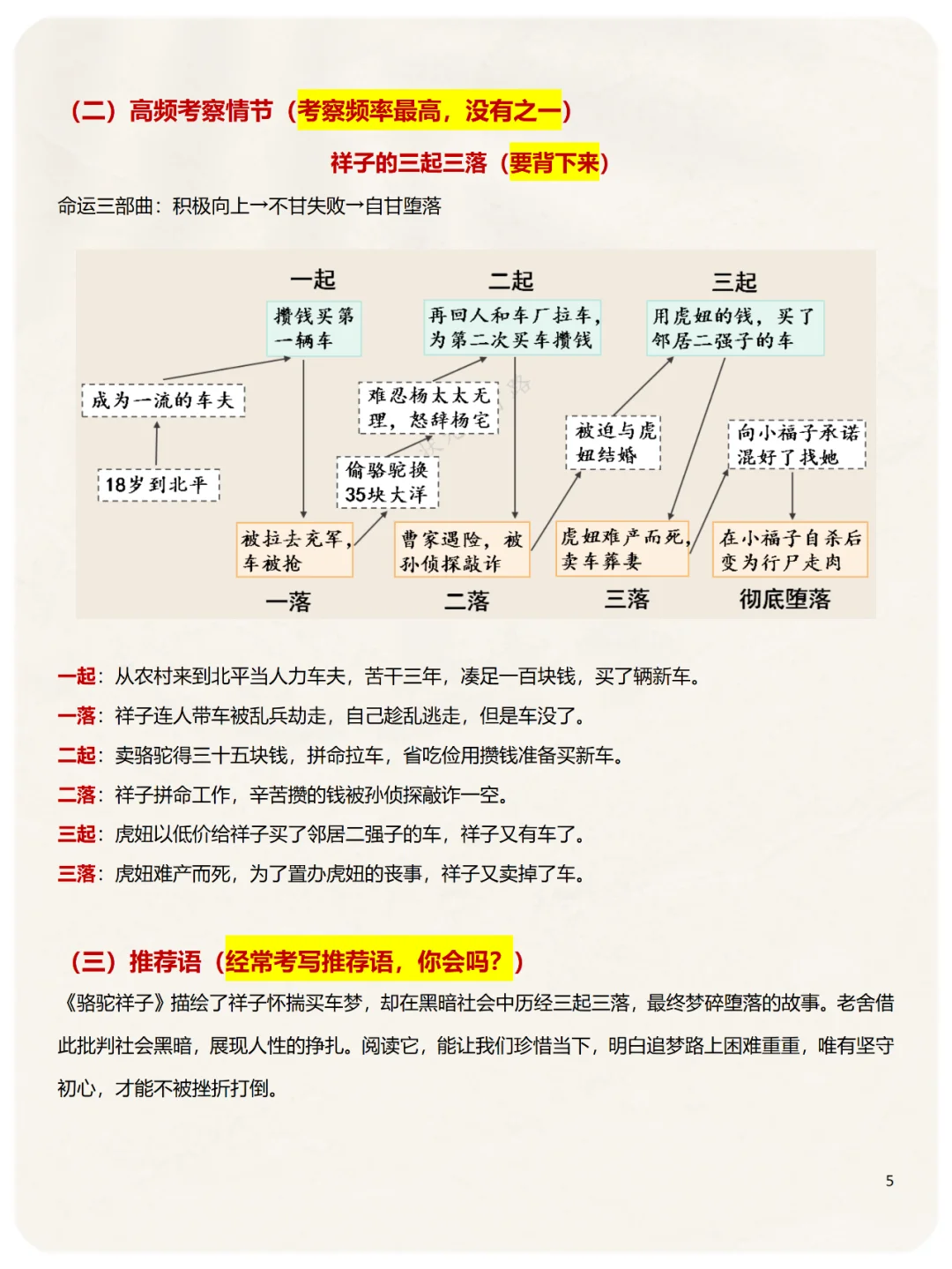 第2️⃣类:主要内容情节,尤其注意祥子的三起三落,一共6个情节
