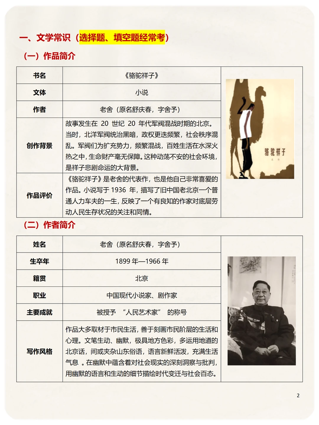 第1️⃣类:文学常识,包括作品简介+作者简介,选择题、填空题经常考