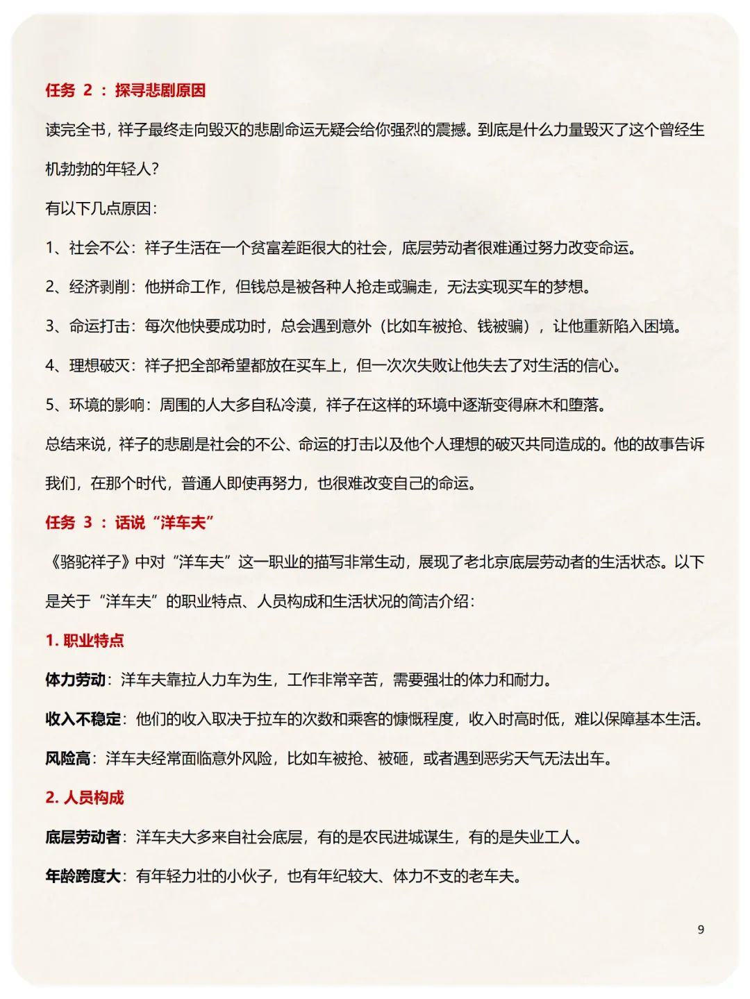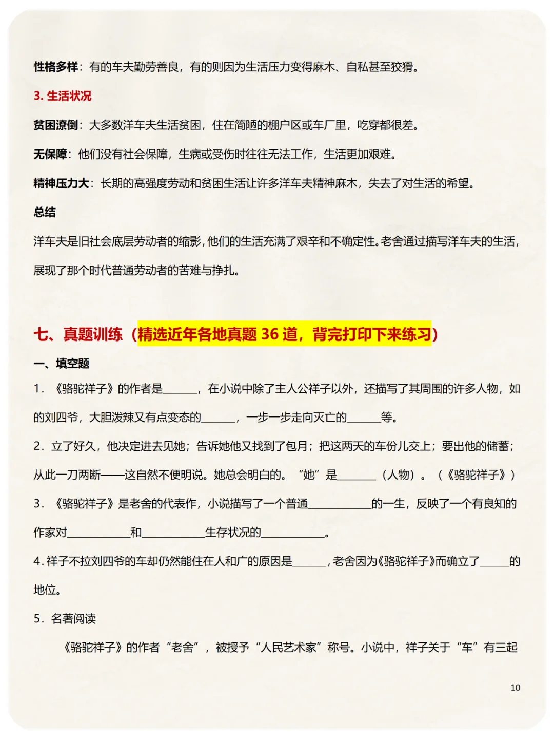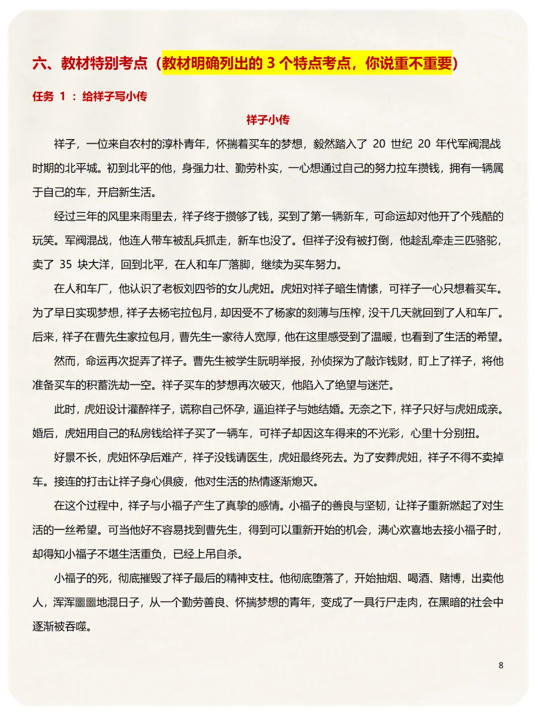 第6️⃣类:教材特别考点,3个,祥子小传、悲剧原因、洋车夫