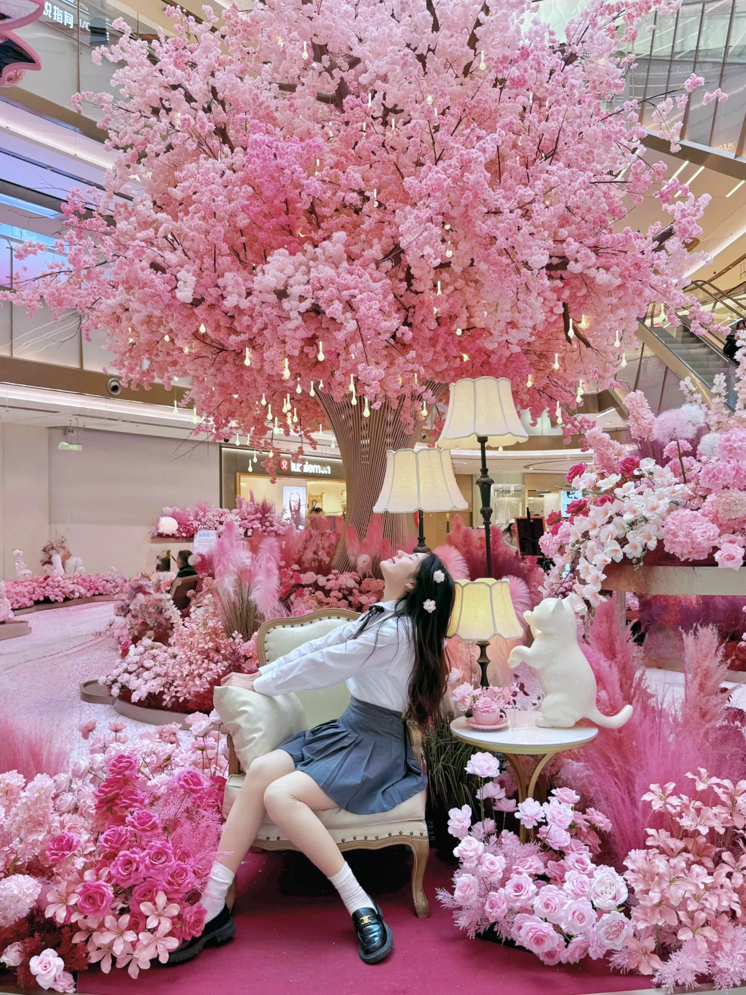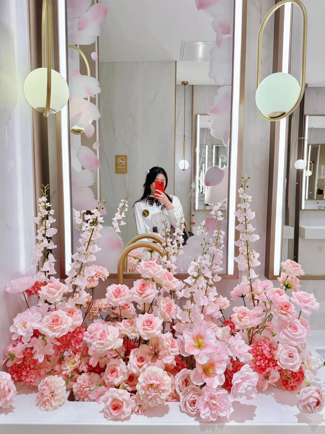 二层女卫生间🚻洗手盆里长满樱花🌸也超好看的