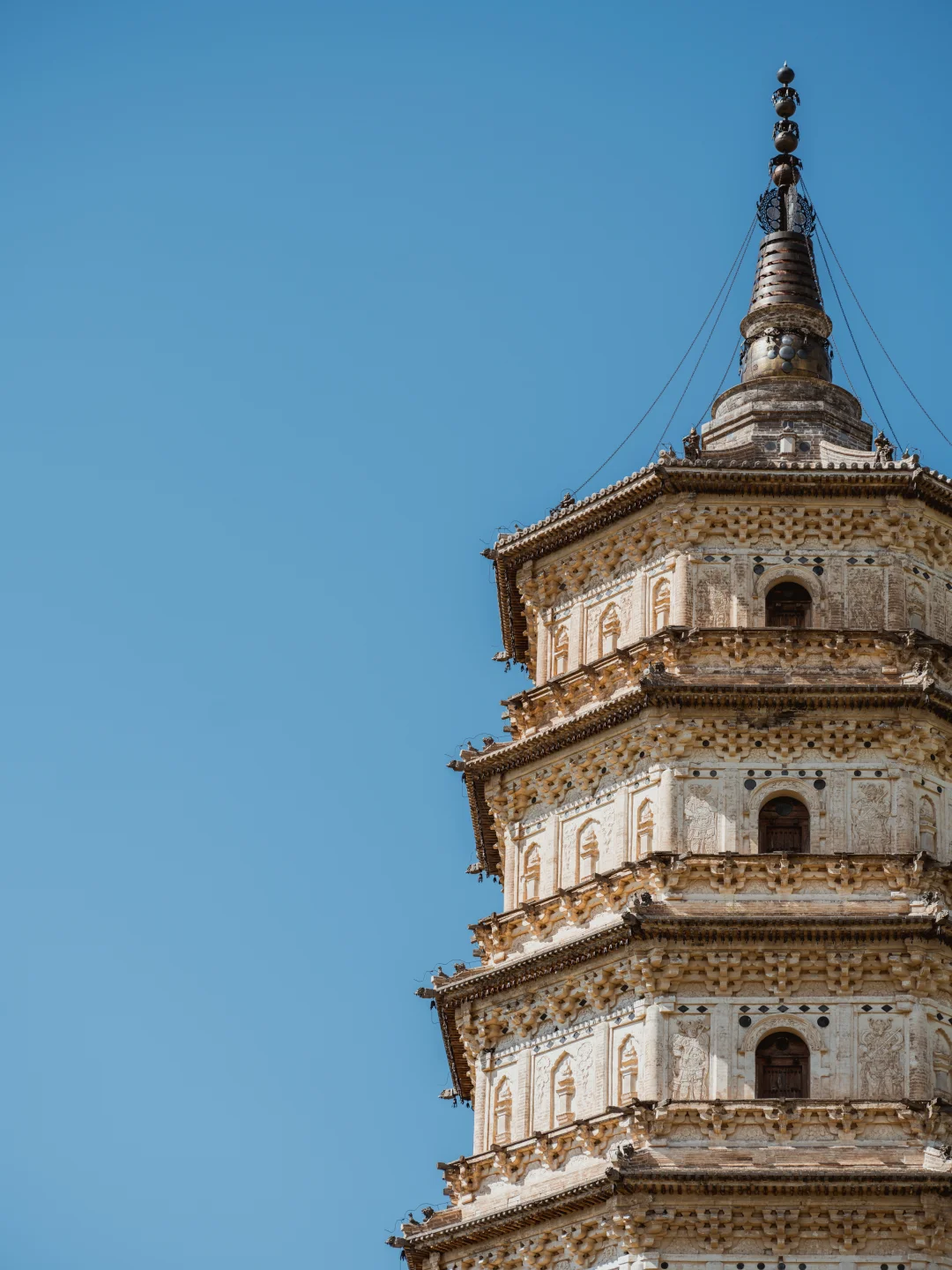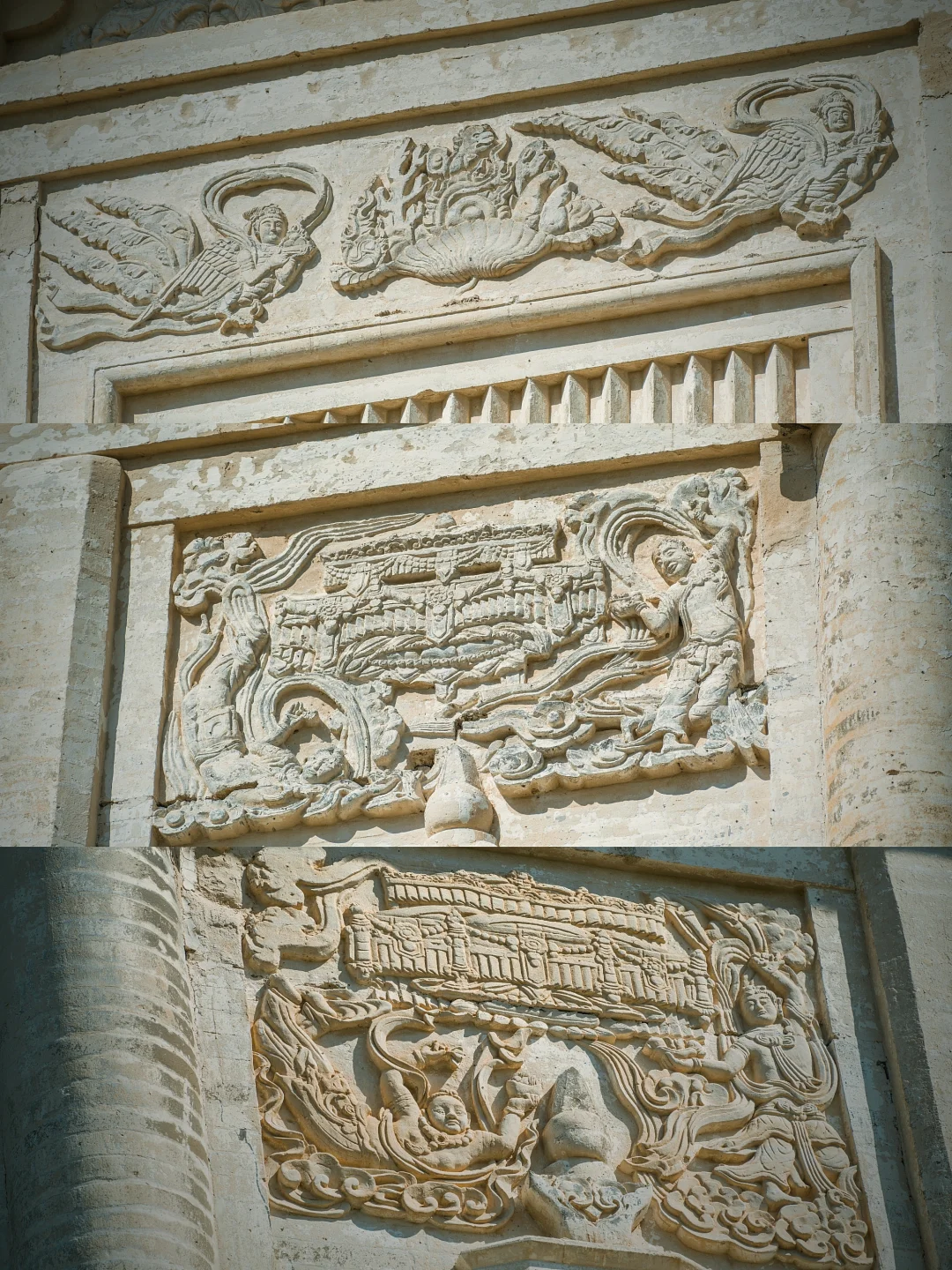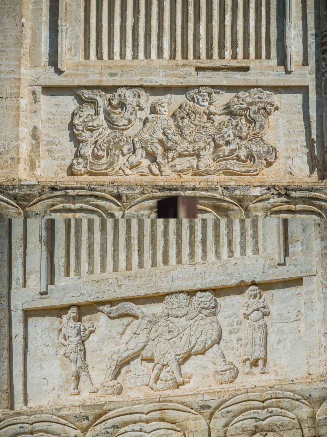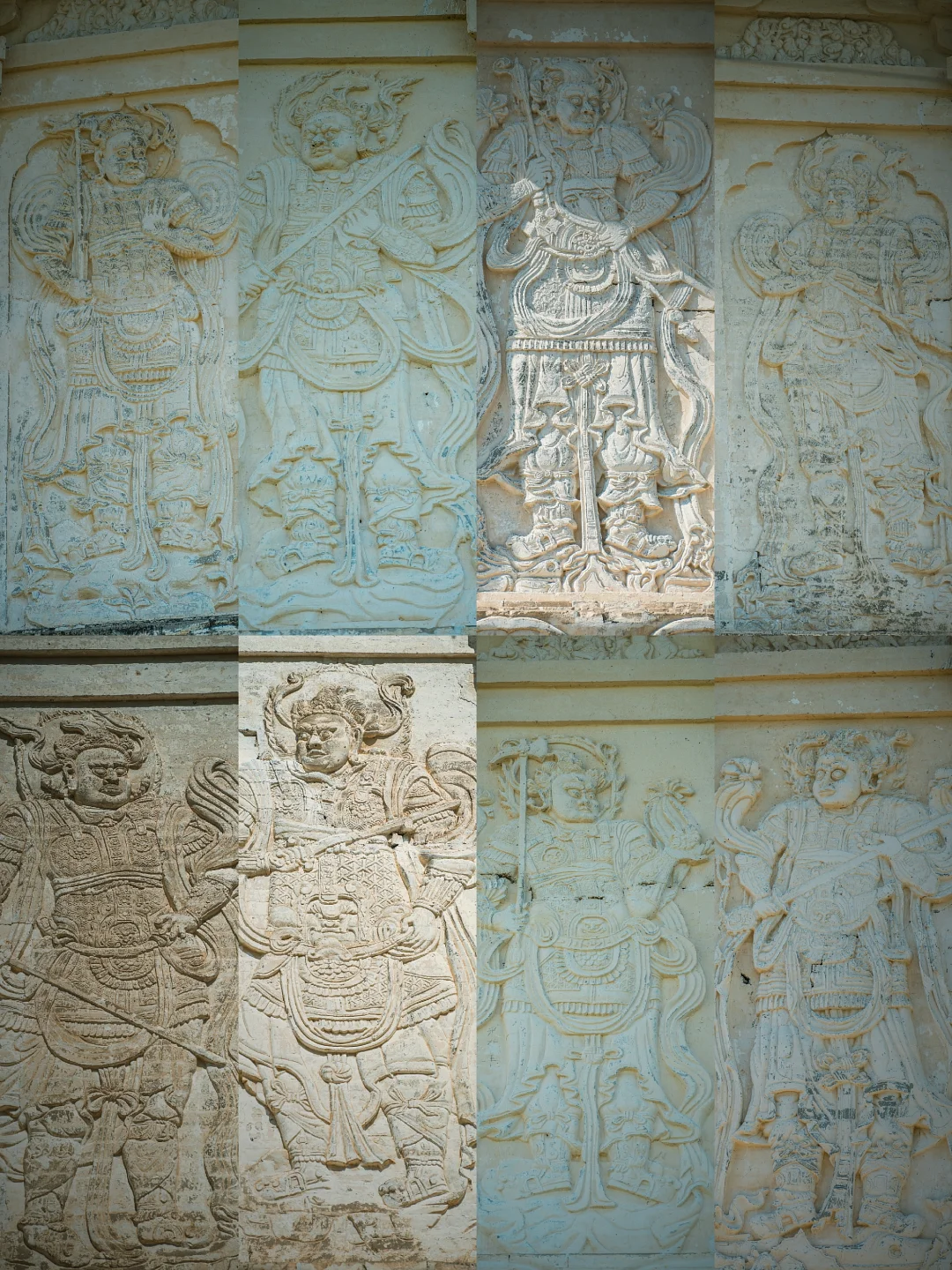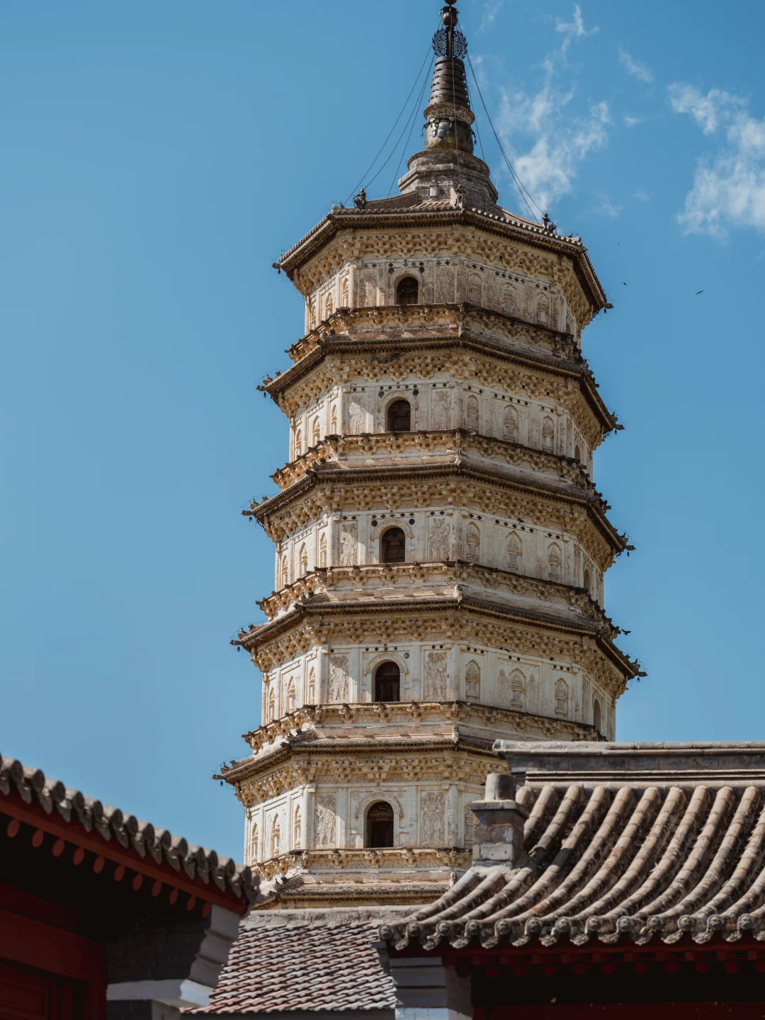 车窗外,内蒙古的草色初醒,仍裹着枯黄旧袄。 车子碾过巴林右旗的乡间小路,远方地平线上,忽有白影浮出草浪,如同沉船浮出水面——庆州白塔到了。 这塔身披素白,在旷野中兀自孤拔。风掠过草尖,爬上七级塔檐,惊动了檐角悬挂的铜铃,叮咚声被草原的辽阔托着,遥遥荡开,仿佛来自另一个时空的回响 🗿初见白塔,你很难相信这是座千年建筑。八角十三层的密檐式塔身,被风沙打磨得泛着温润的光,塔身八面的浮雕菩萨像,衣袂还保持着刚凿刻时的飘逸,只是鼻梁上落了层薄薄的黄沙,像哪位牧民随手抹上去的岁月印记。塔基四周的草甸里,零星长着些开蓝花的沙葱,风一吹,花穗蹭着塔身发出沙沙响,倒像是在跟老塔说些草原上的新故事。 ⏳当地人叫它“庆州白塔”,可翻起历史账本,它本名叫“释迦佛舍利塔”。辽圣宗为母亲章圣皇太后祈福建塔时,大概没想到一千年后,草原会吞噬掉庆州城的残垣,当年,金人的铁蹄无情地踏碎了庆州城的宫墙,城内的宫殿、房屋在战火中化为废墟,然而当他们来到白塔前,在那莲花座下,却不由自主地迟疑了。即使是被视为野蛮的民族,面对这座精美绝伦的白塔,内心也会被它的魅力所震撼,不忍心将其毁掉,这座塔像枚定海神针,成为了整个庆州唯一的遗留物。1989年修缮时从塔刹天宫出土的那件银鎏金舍利瓶,现在躺在博物馆里闪着光,我仰头细看,塔身层层叠叠的浮雕:菩萨垂目低眉,金刚怒目圆睁,蟠龙在砖石间游动……千年风沙磨蚀了棱角,却让那些辽代匠人的虔诚与威严,在残缺处渗得更深 💫离开时回头望,白塔已经融在暮色里,只剩轮廓线和天上的月牙儿相映。忽然想起博物馆里那卷从塔中出土的辽代写经,墨色在宣纸上洇开的纹路,竟和塔身上的砖缝走向莫名相似。原来有些时光啊,早就把自己刻进了石头里,等着风来读,等着人来懂。这草原深处的白塔,哪是什么建筑,分明是一千年的光阴凝成的守望者,守着沙砾里的往事,也守着每双望向它的眼睛
