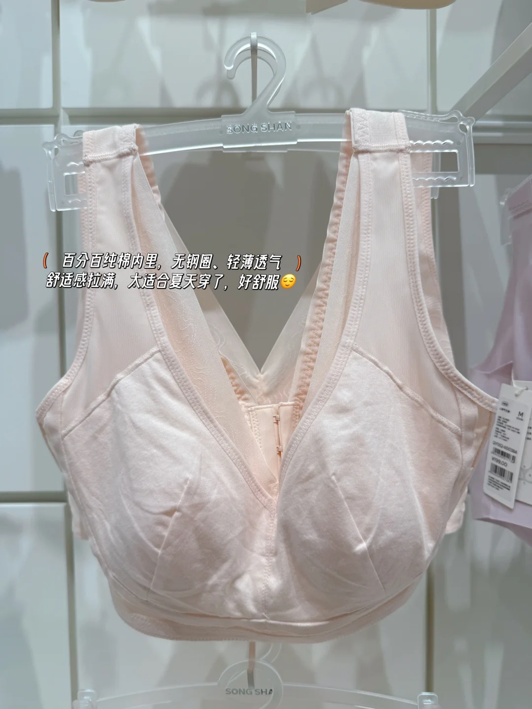 没有钢圈束缚,纯棉材质柔软亲肤,薄薄一层,太适合大🐻姐妹了,夏天就喜欢穿这种轻薄透气的的内衣👙无拘无束,胸部无压力💫