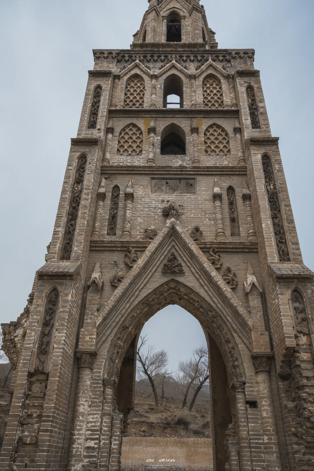 ⛪离镇宁箭楼不远,哥特式尖顶突然刺破黄土高原的苍凉——这就是八台子教堂。这座1876年由德国神父建造的教堂,如今只剩钟楼残垣,却成了"东方大三巴"