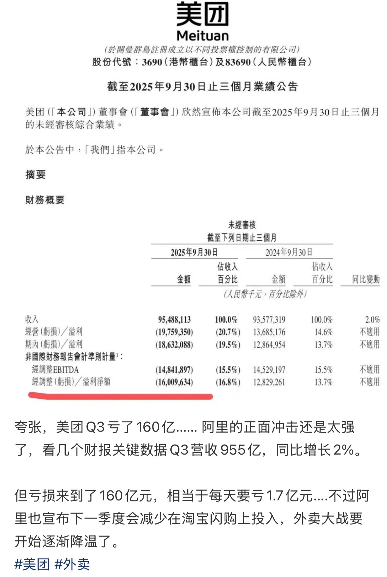 硝烟弥漫的外卖战场,终于迎来了第一份惨烈的战报。就在昨天,随着美团2025年三季