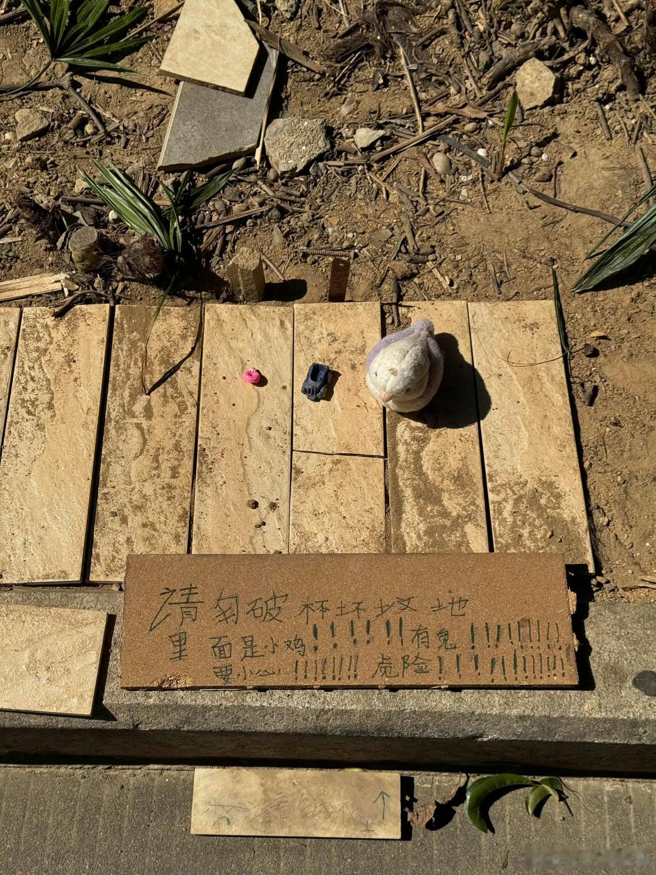 被这个世界温柔到了! 小孩精心喂养的小鸡死掉了,伤心之余,他把小鸡埋葬在了花园,上面盖了木板,防止被人踩到。更贴心的是,还写了一段话:请勿破坏坟地,里面是小鸡,有鬼,要小心,危险! 大人看到可能会一笑了之,但这里面藏着孩子的深情,他觉得“有鬼”可能会吓跑过路人,这样他的小鸡就不会受到打扰了。 小孩子的世界很单纯!也很美好!