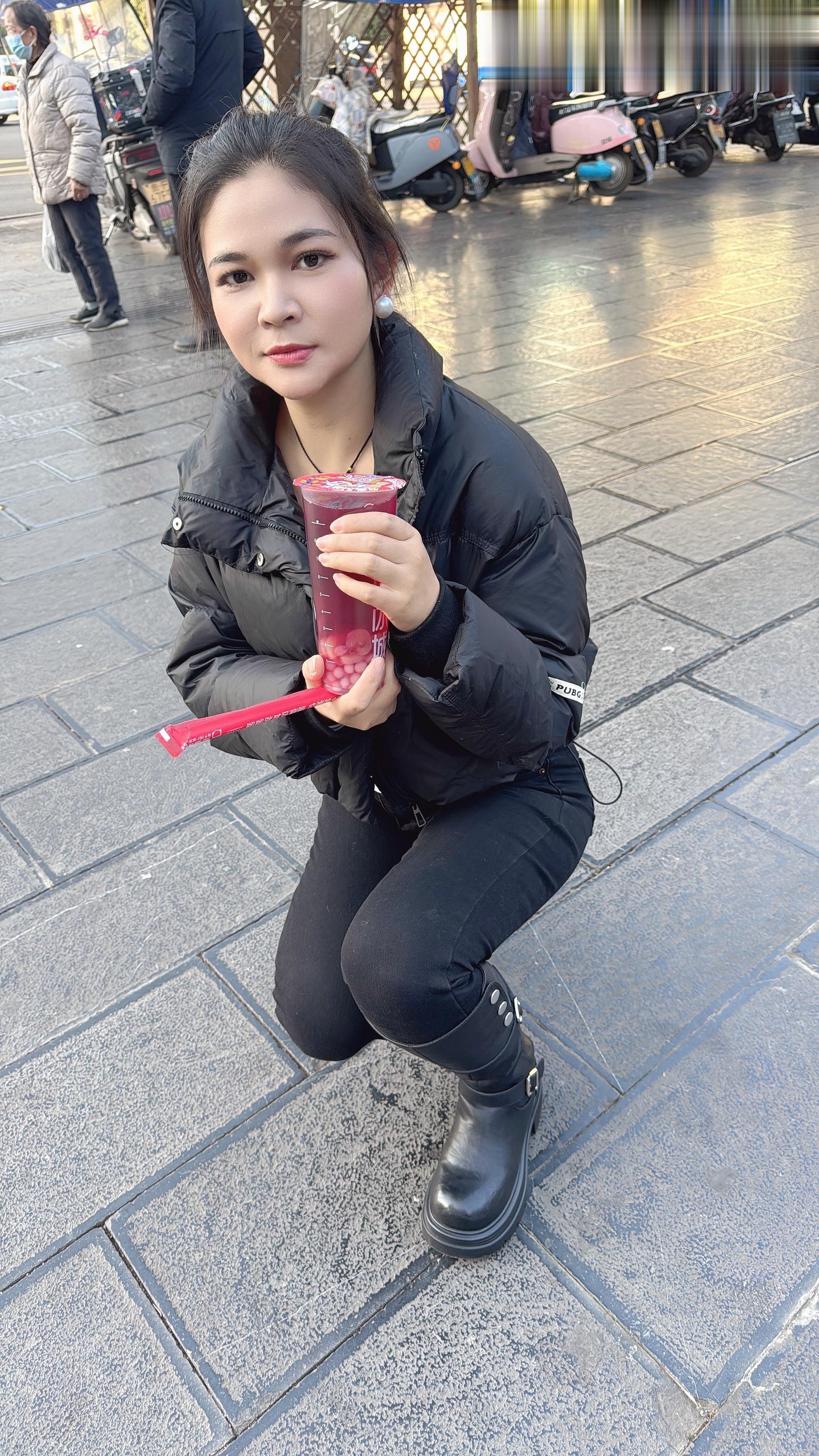 买奶茶的美女姐姐街拍穿搭高清美女高雅气质美女好身材性感女神大部分女生为