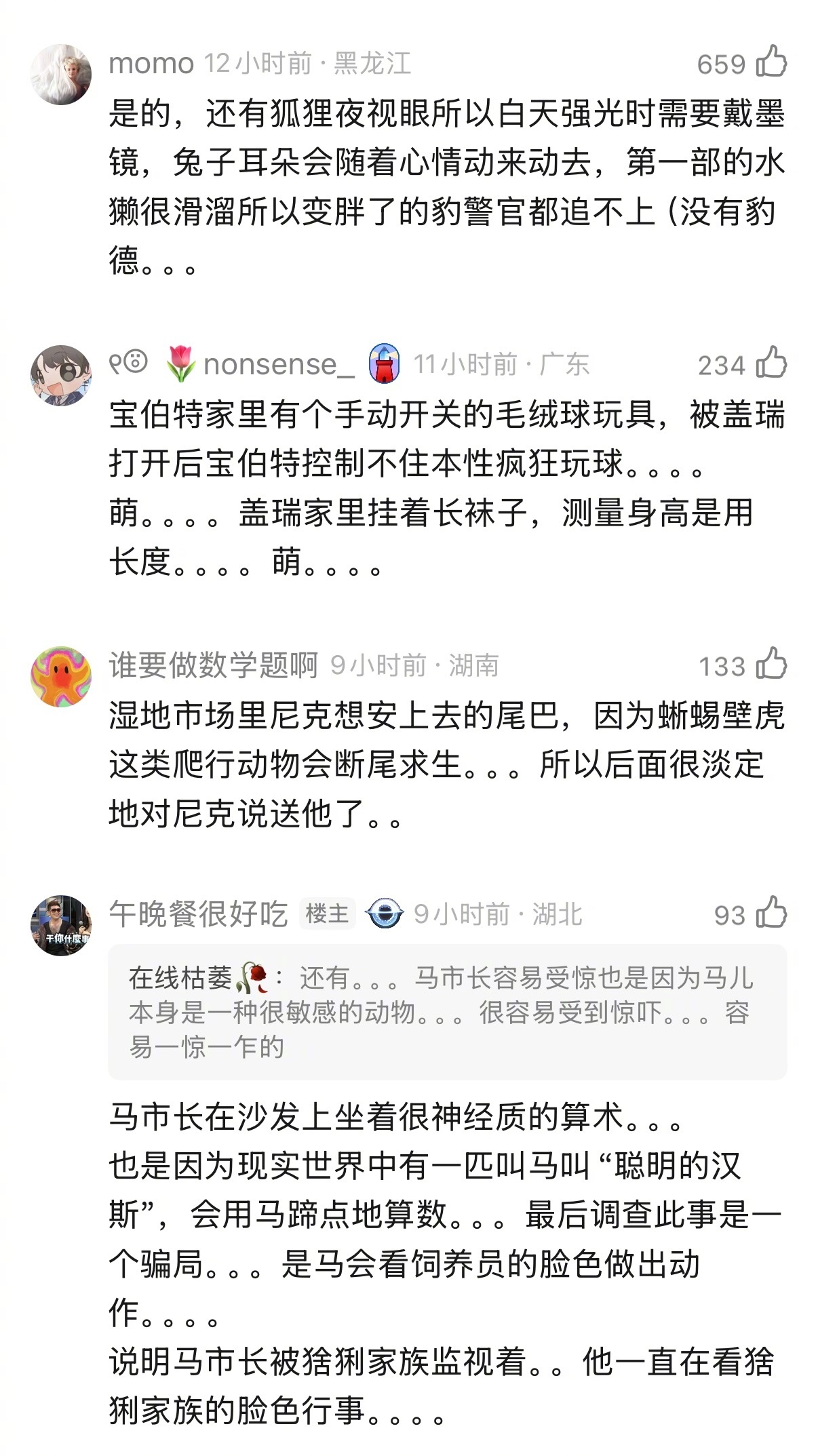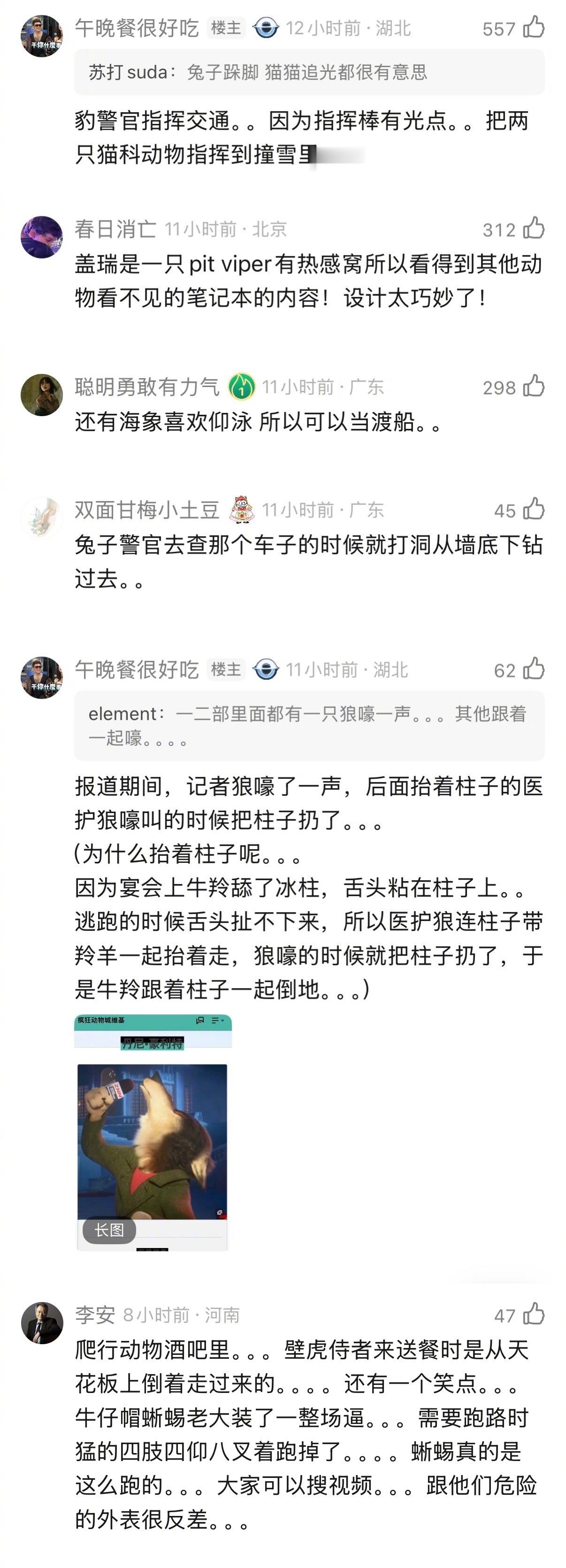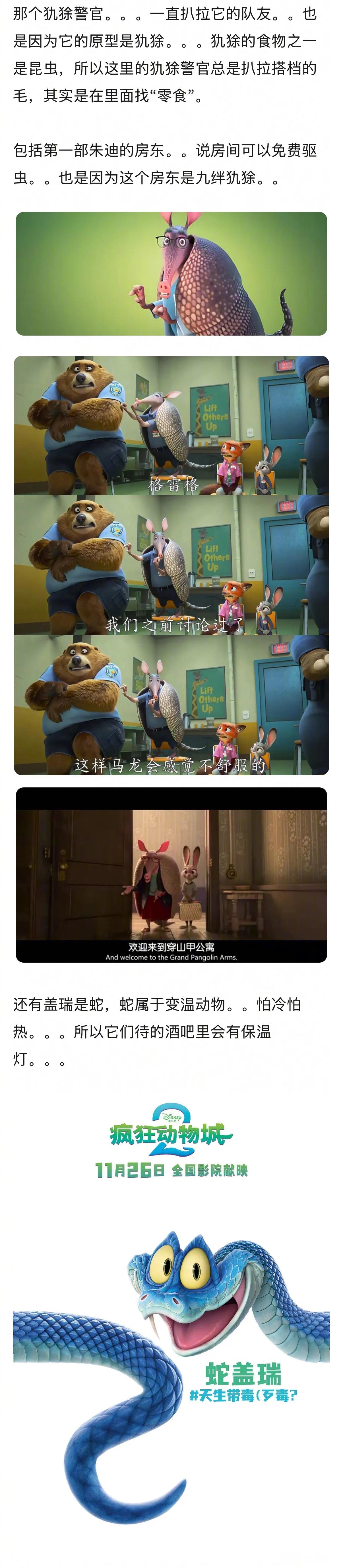 很喜欢疯狂动物城这部电影的原因:每个小动物的行为和活动都符合他们的生活习性,大家