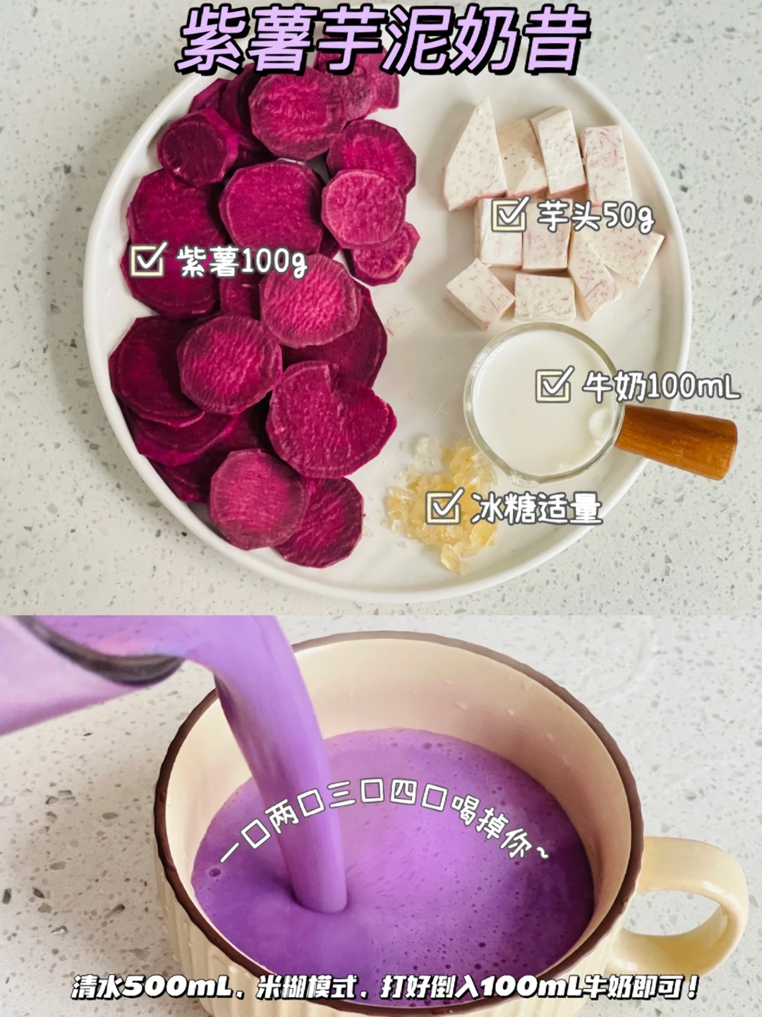 紫薯100g➕芋头50g➕牛奶100mL➕清水500mL