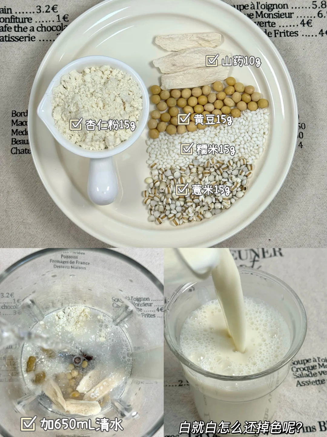 1️⃣杏仁粉➕山药➕黄豆➕糯米➕薏米