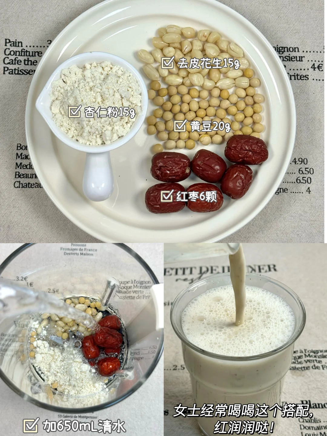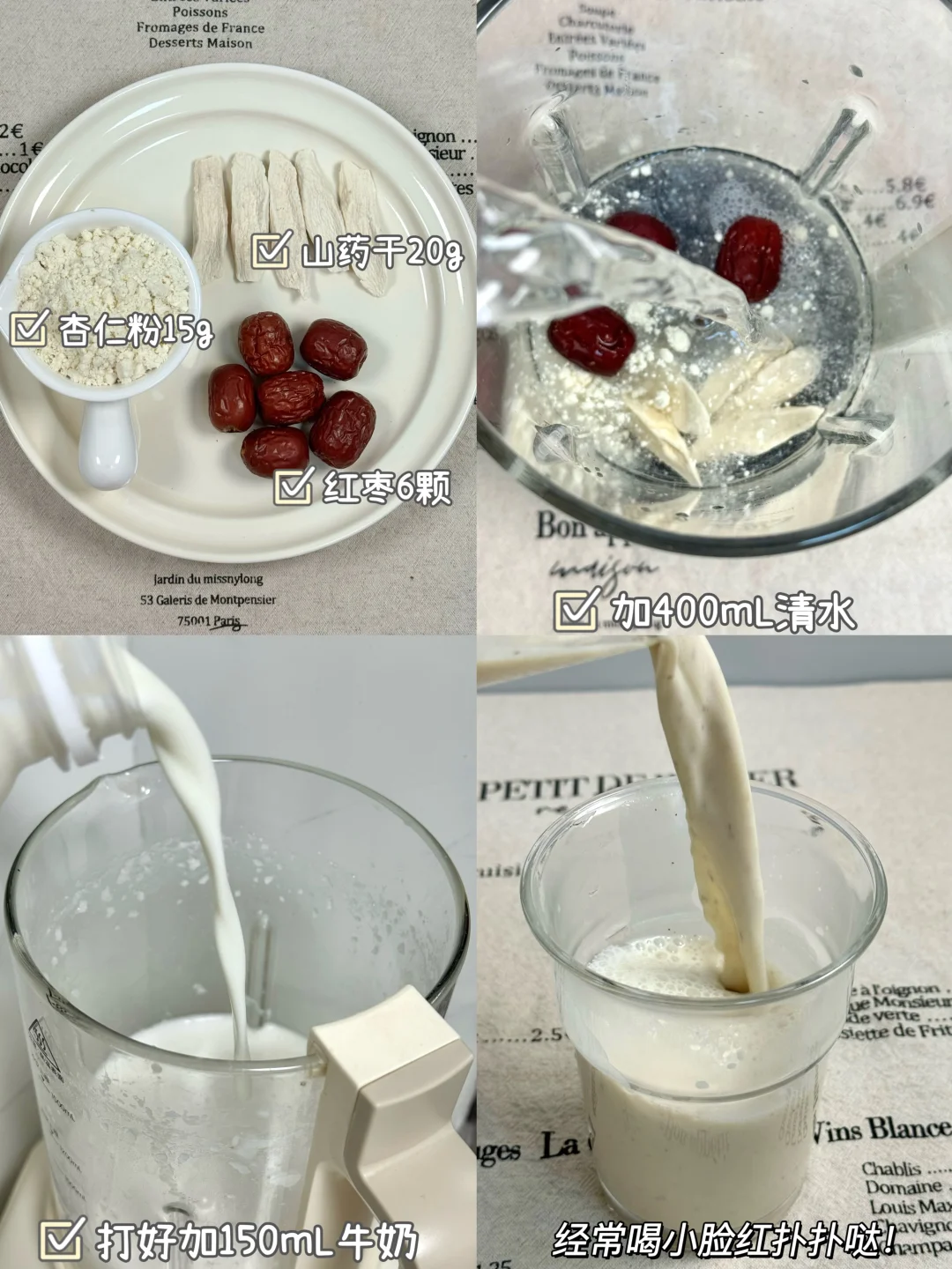 3️⃣杏仁粉➕山药➕红枣➕牛奶🥛