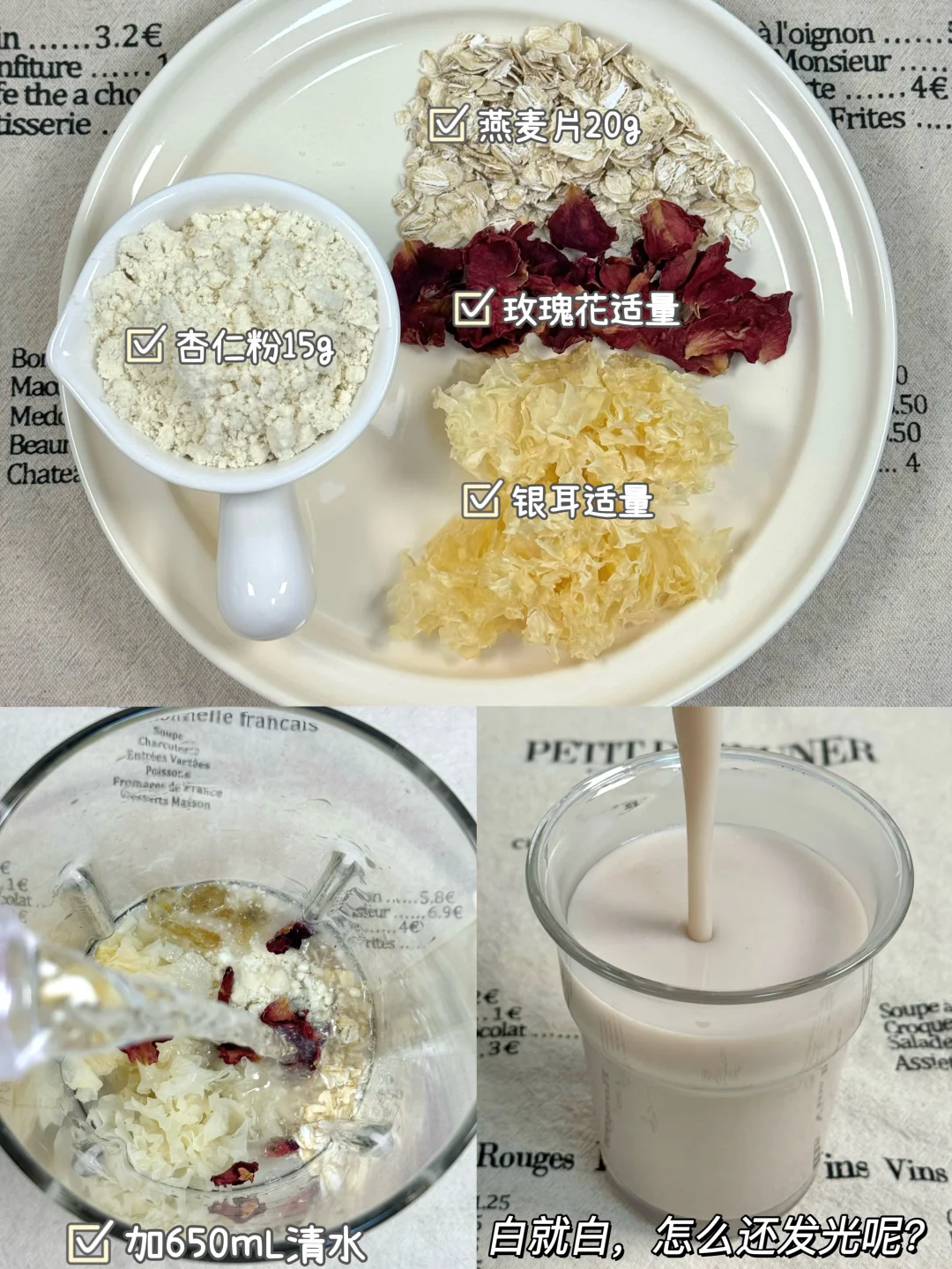 6️⃣杏仁粉➕燕麦片➕玫瑰花➕银耳