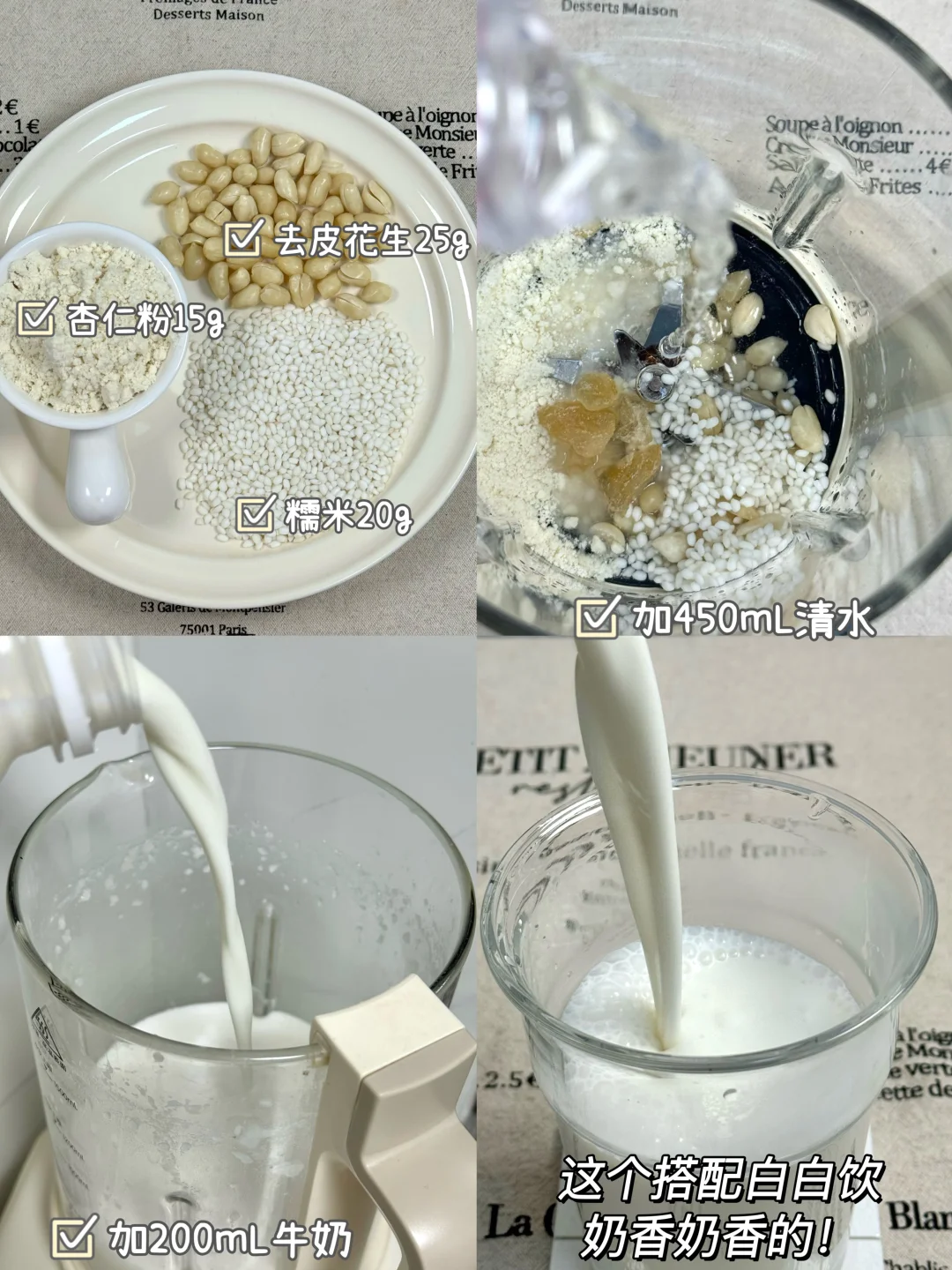 5️⃣杏仁粉➕去皮花生➕糯米➕牛奶🥛