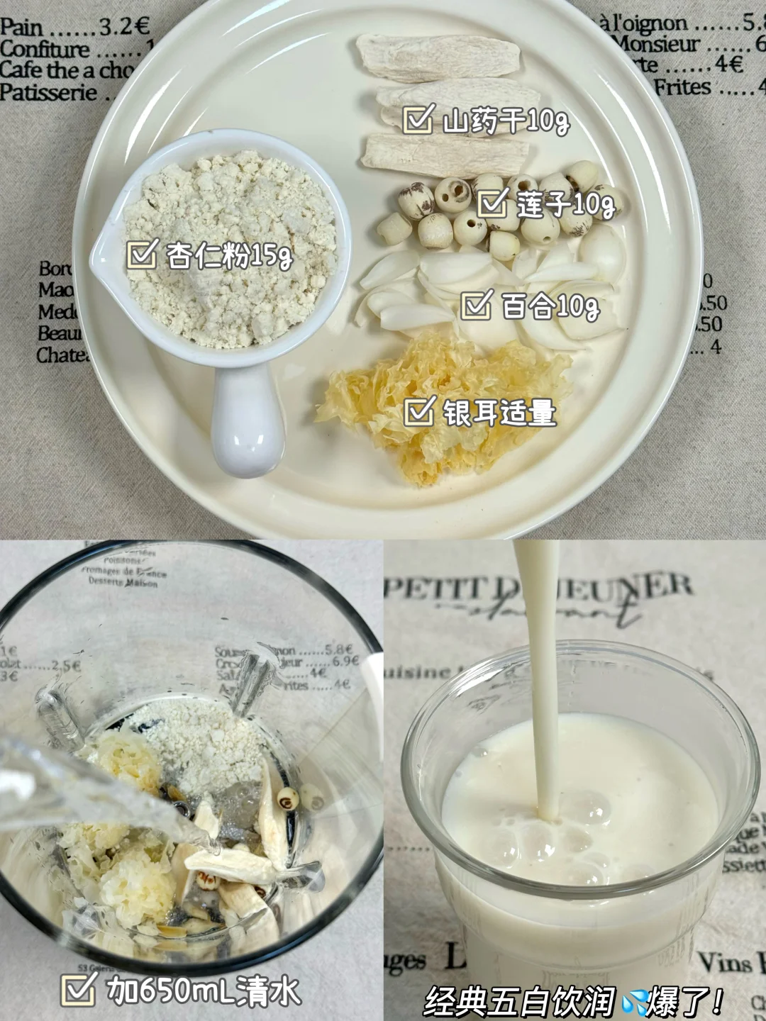 4️⃣杏仁粉➕山药➕莲子➕百合➕银耳