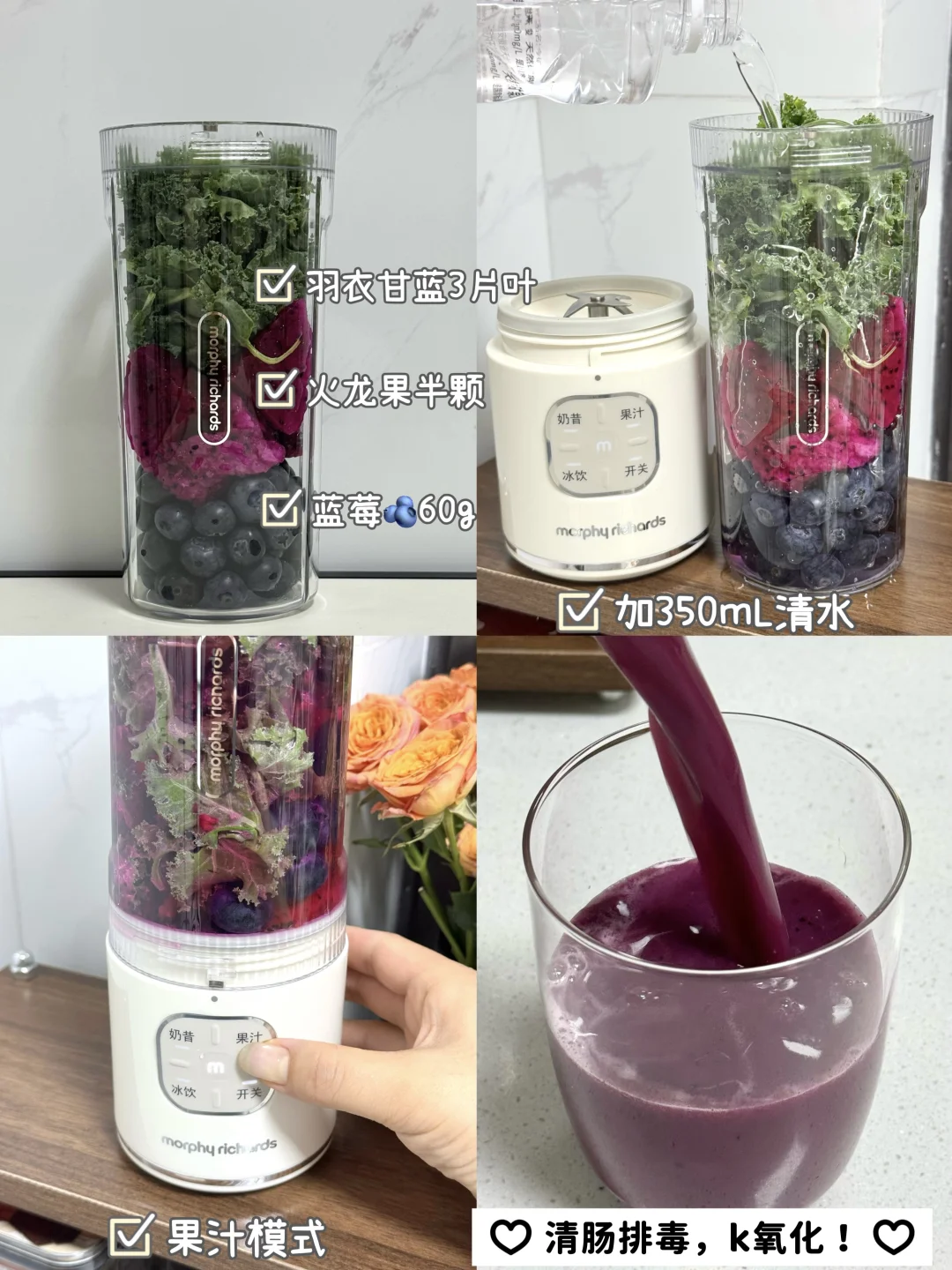 6⃣蓝莓➕火龙果➕羽衣甘蓝➕清水(清肠排毒,K氧化美容养颜)