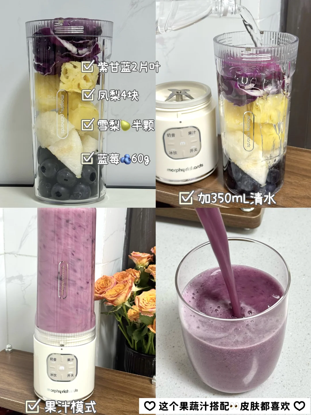 4⃣蓝莓➕紫甘蓝➕雪梨➕凤梨➕清水(美白K氧化)