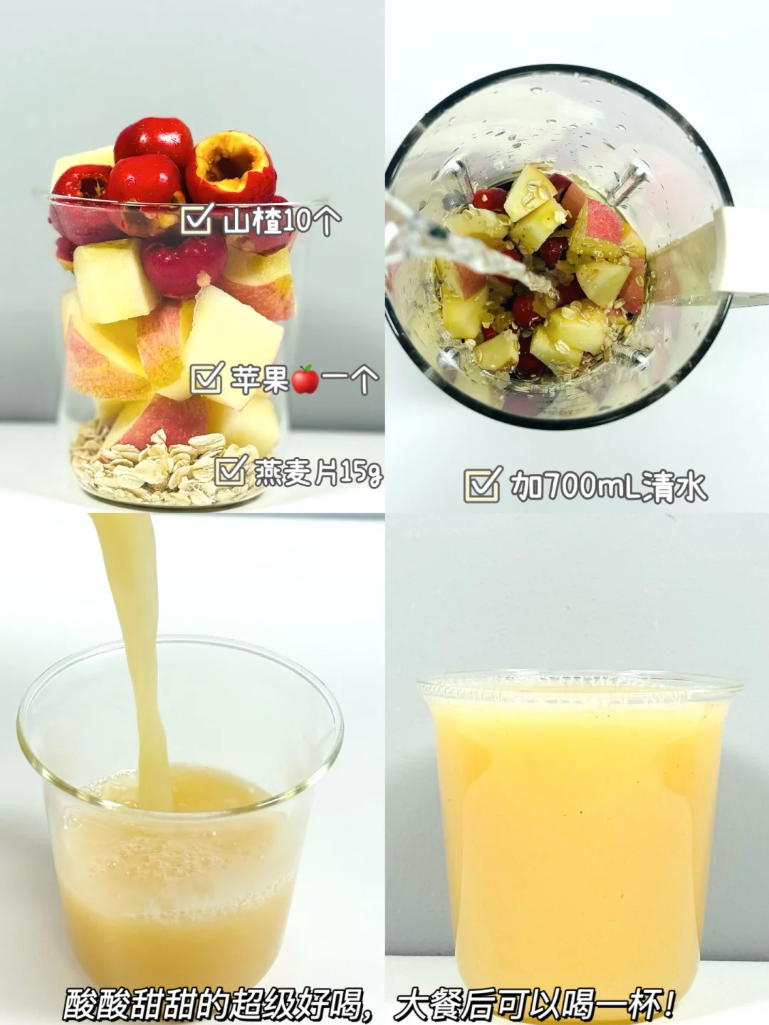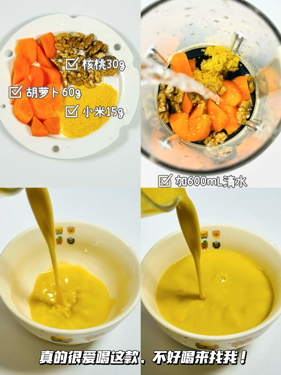 最近天气越来越凉,总想喝点热乎的…… 这不又来给大家分享我一周不重样的营养豆浆! ✅食材: 1️⃣紫薯➕燕麦片➕小米 2️⃣红薯➕黄豆 3️⃣山楂➕苹果🍎➕燕麦片 4️⃣胡萝卜🥕➕核桃➕小米 5️⃣玉米🌽➕燕麦片➕小米 6️⃣黄豆➕燕麦片➕巧克力🍫 ✅做法: 做法很简单,食材放入破壁机中豆浆模式/米糊模式即可! 🌈姐妹们这几个豆浆真的好好喝,细腻丝滑,真的敲好喝!