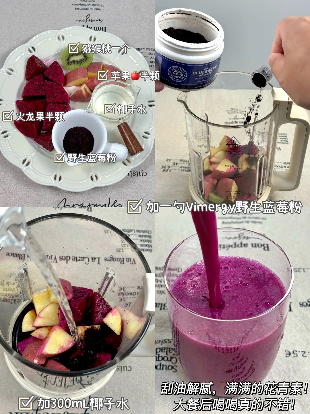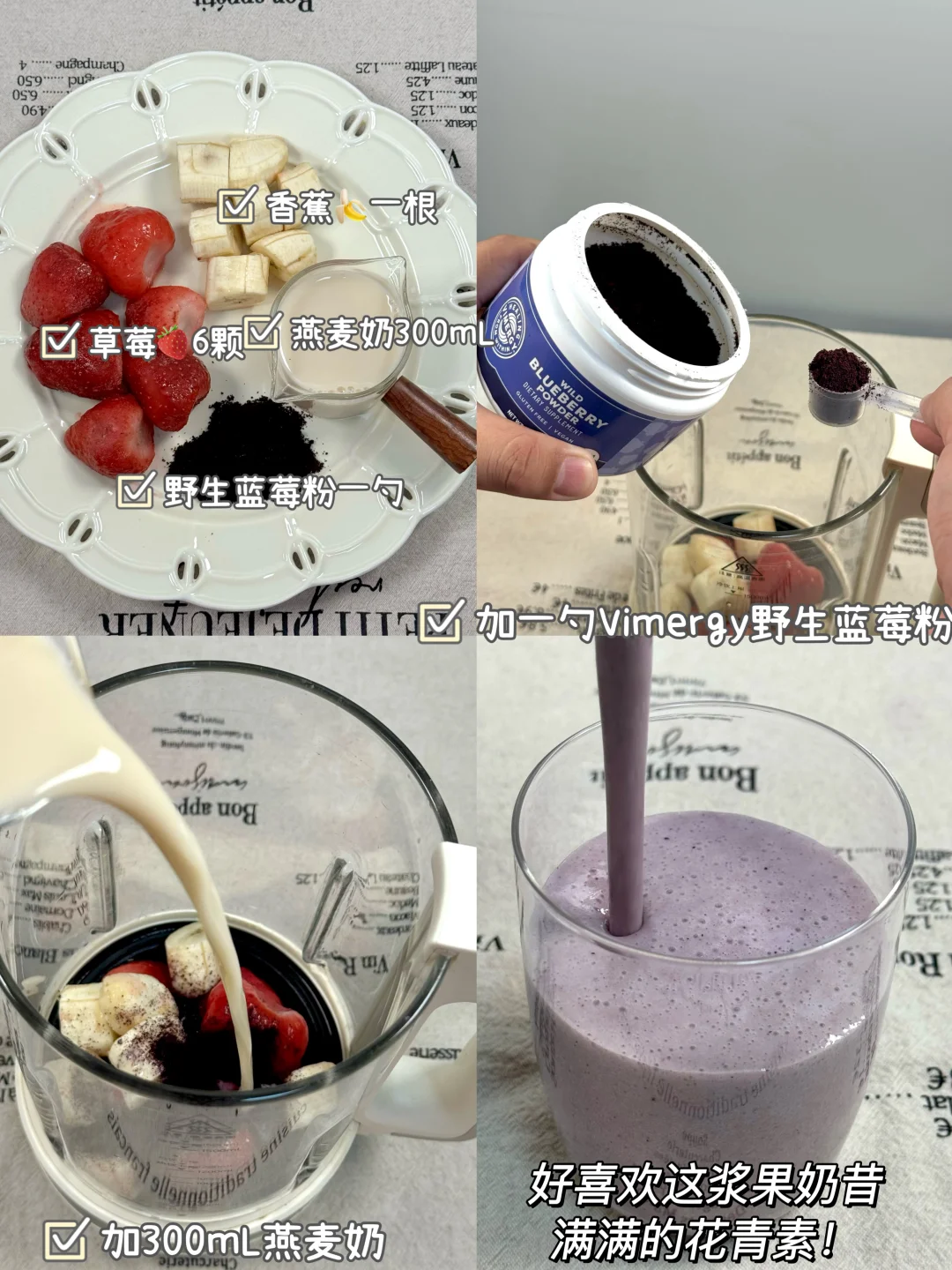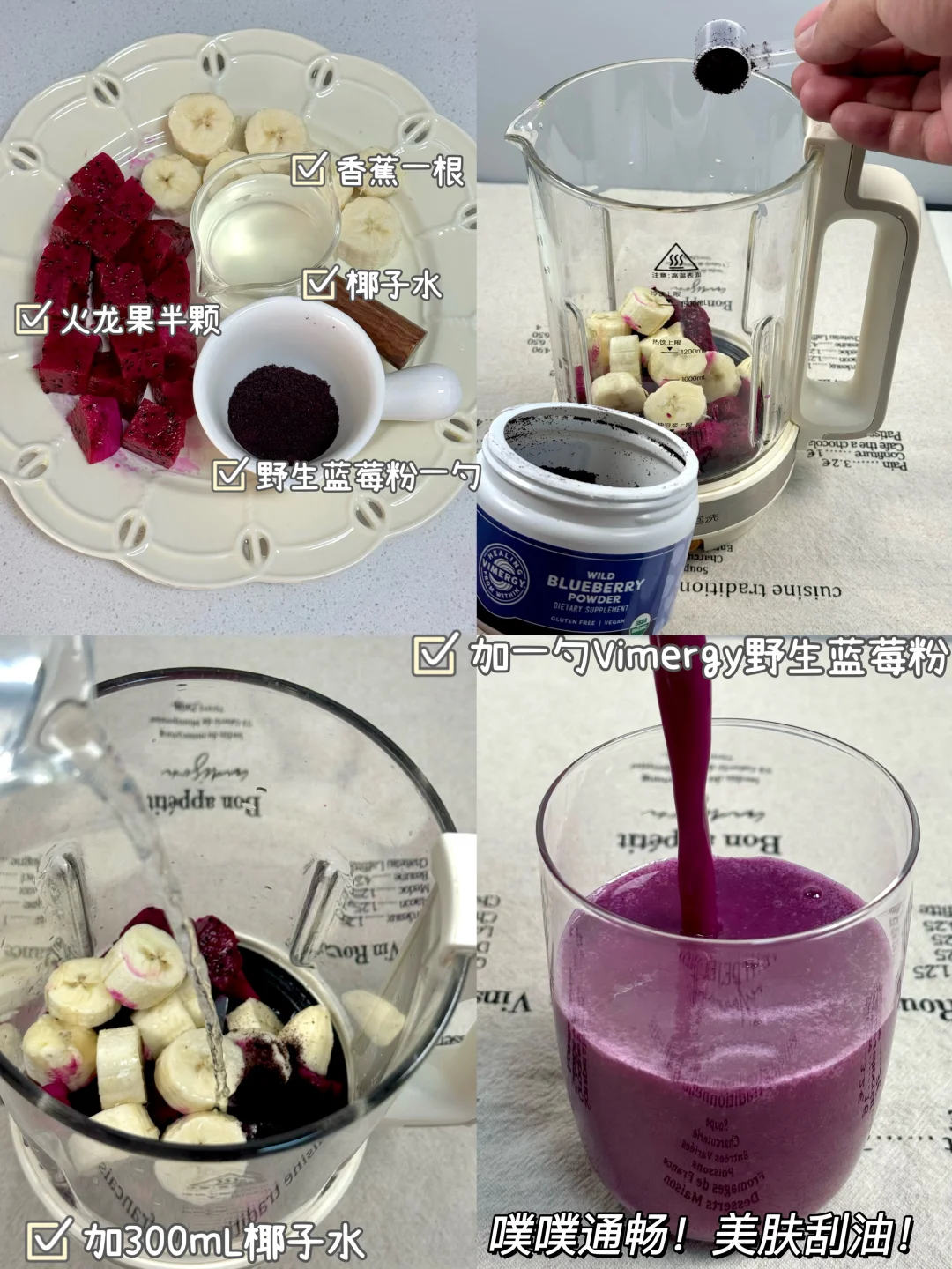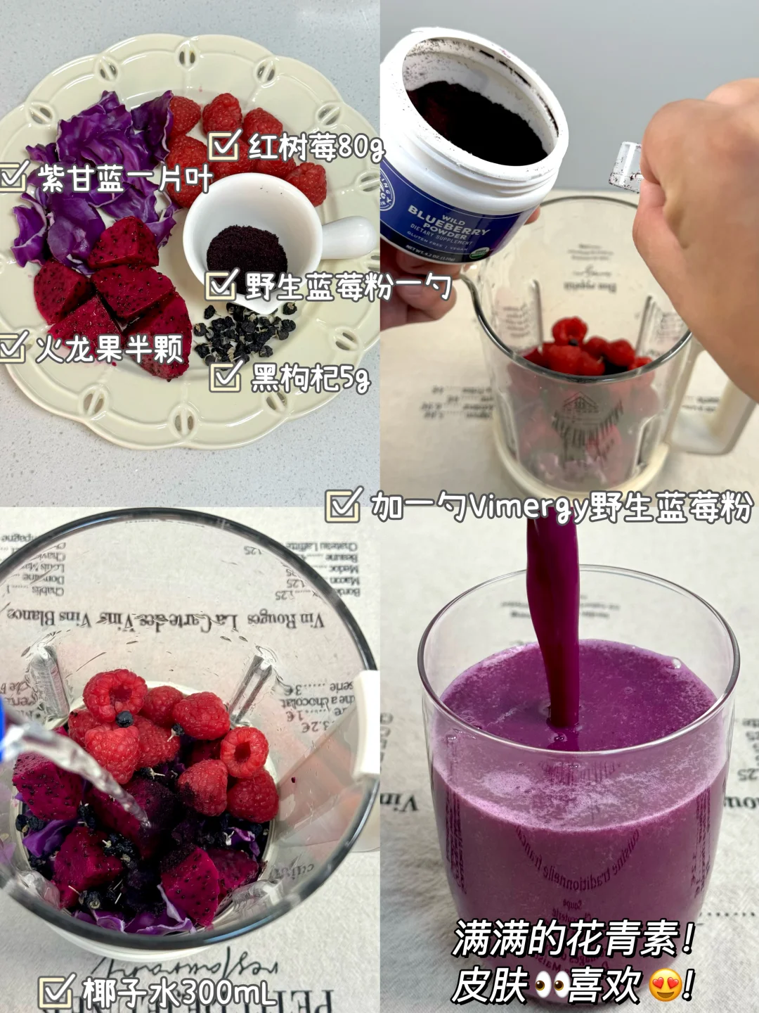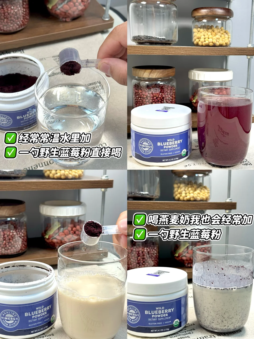 最近做的花青素果蔬汁都会➕一勺Vimergy有机野生蓝莓粉!一勺=80粒新鲜野生蓝莓🫐!相比人工种植大个头蓝莓🫐野生蓝莓的花青素含量要高出很多倍!Vimergy野生蓝莓粉无任何添加,只有一种成分!平时搭配果蔬汁/奶昔都可以,经常熬夜用👀的姐妹一定要坚持喝!