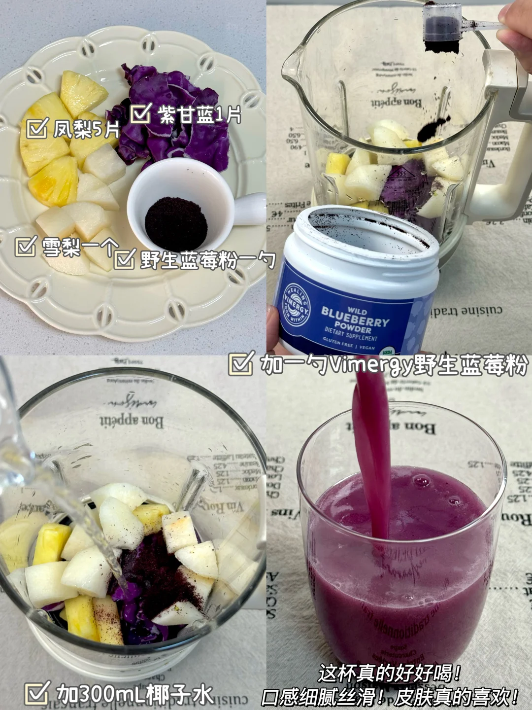 2️⃣紫甘蓝➕雪梨➕凤梨➕野生蓝莓粉➕椰子水