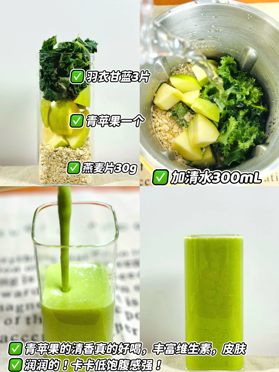 3️⃣羽衣甘蓝3片➕青苹果🍏一个➕即食燕麦片30g