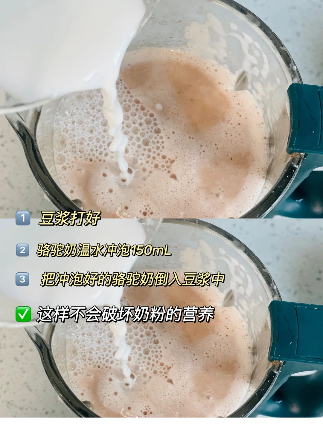 将所有食材放入破壁机中,加清水至500mL水位线,米糊或豆浆模式,打好倒入提前泡好的骆驼奶搅拌即可,奶香十足!