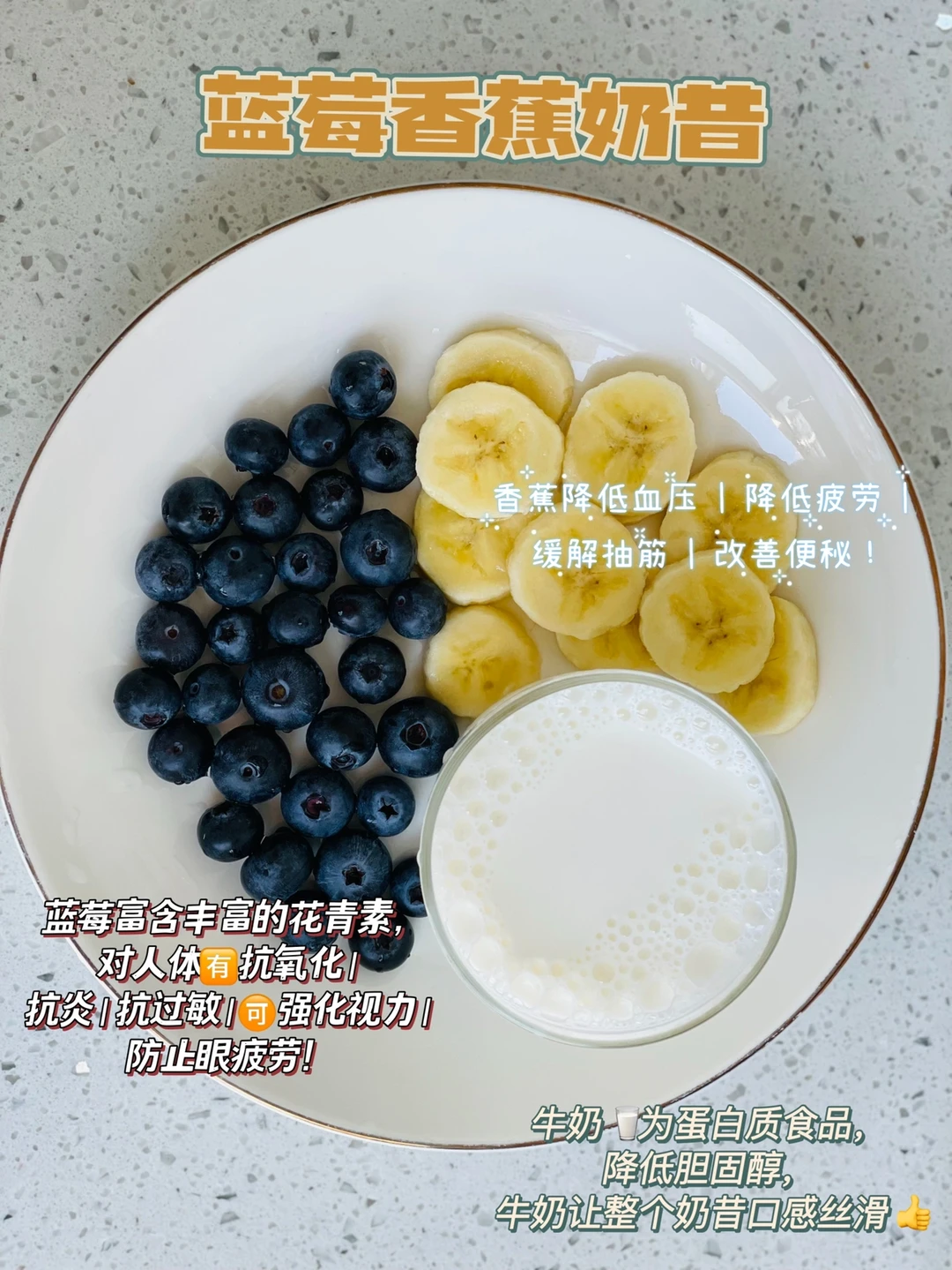 🔥蓝莓➕香蕉➕牛奶,这搭配可以锁死了! 🔥美白抗氧化神器,一定要安利给你们[赞R] 🔥减肥期的宝宝们可以喝,轻食店配方👍🏻 ✨食材:蓝莓约65g,香蕉半根。 牛奶250ml(喜欢浓稠,可以少放点牛奶)。 ✨做法:①将蓝莓,香蕉,牛奶一起放入破壁机中。 ②果汁模式,2分钟既可。 ✨养生功效:美白抗氧化 | 清热去火 | 非常适合夏季👍🏻。 ❤️蓝莓含有丰富的花青素,花青素对人体有抗氧化 | 抗炎 | 抗过敏 | 保护心血管 |。 ❤️香蕉降低血压 | 缓解抽筋 | 改善便秘。