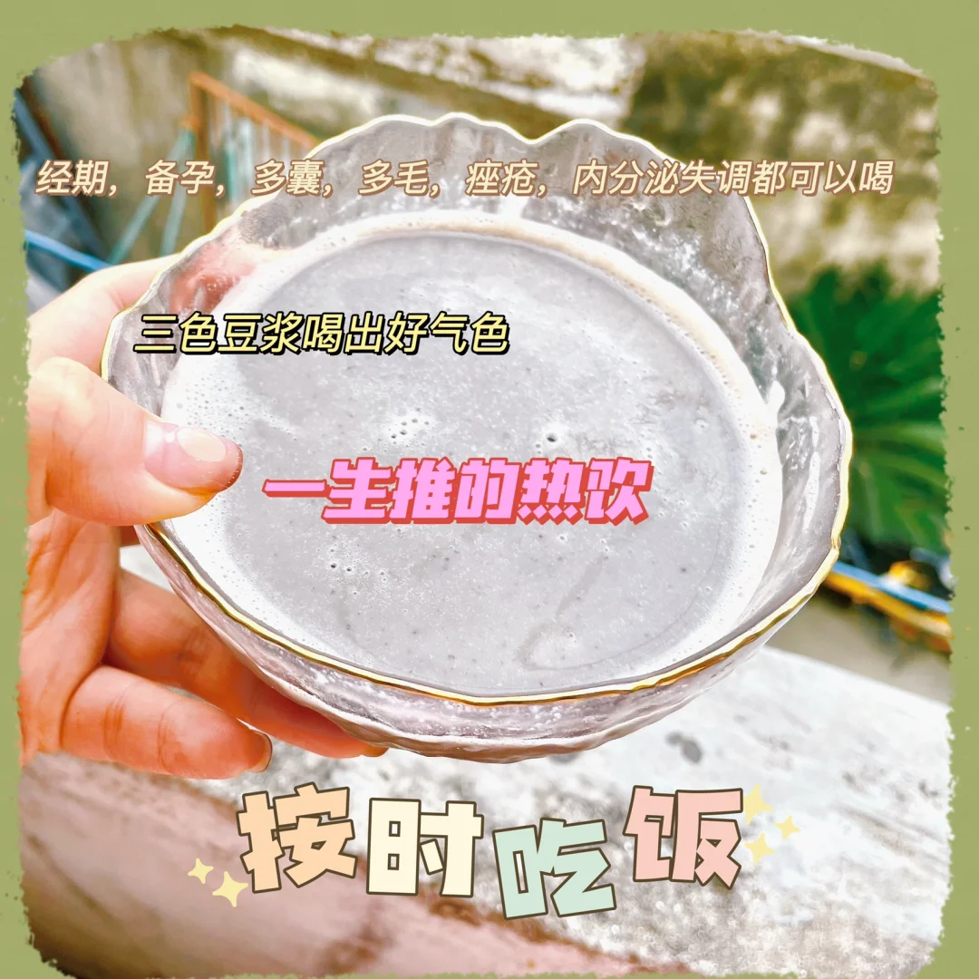 🌈食材:黑豆15克,黄豆15克,红豆10克,黑芝麻8克,红枣3颗,适量冰糖(一般有红枣我不加冰糖) 🌈做法:所有食材洗干净放进破壁机(如果是豆浆机提前把三色豆泡五六个小时,食材再加一倍的量,因为榨好要过滤)加600ML的水,豆浆模式即可。 🌈养生功效:美容养颜,补气血,健脾养胃,补虚所要,通淋利尿,润肤美容! 🌈适合谁喝:一般人都可以喝,特别月经量少,多毛,痤疮,内分泌失调,脱发,更可以多喝[害羞R]