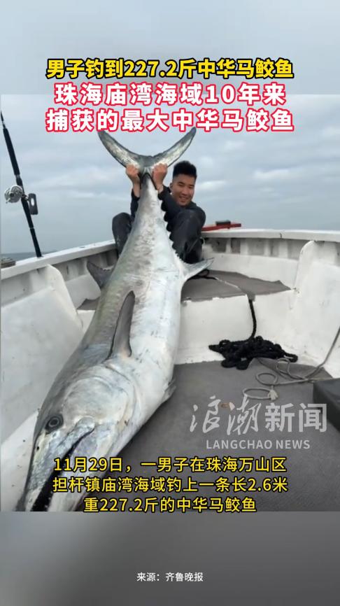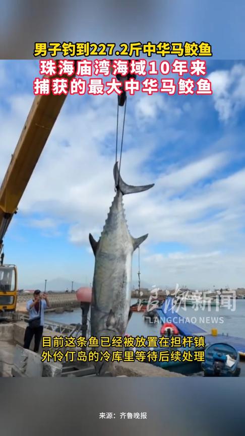 简直赚翻了!11月29日,广东珠海,一男子出海钓鱼时,鱼竿传来从未有过的抖动,就连他都差点被拉下水,在朋友的帮助下,众人鏖战数个小时,才将水里的大家伙拖上岸,竟是一条重227斤的马鲛鱼!网友:今晚就加餐。 现在人们的休闲方式越来越多,而钓鱼就是一项备受人们喜爱的活动,那种挑战未知事物的兴奋感,令人回味无穷,不过并不是每个人都能钓上大鱼的,这非常看运气。 当天一大早,男子就和朋友乘船前往海中央钓鱼,这天天气晴朗,海面看起来非常平静,不料,海底却异常的“躁动”。 抵达指定地点后,男子很快就开始垂钓,一开始并没有什么收获,过了一会儿才开始钓到鱼,但都是些寻常大小的鱼,根本无法满足男子。 突然间,鱼竿弯曲到变形,男子一个人都拉不动,朋友见状急忙抱住他,这才没有掉下船,二人非常激动,很明显是钓到了不得了的大家伙。 经过数个小时的鏖战,力竭的大鱼这才缓缓浮出海面,男子见后非常兴奋,看起来至少有2米长!兴奋之余,渔船快速返回岸边。 叫来吊车后,这才将大鱼拖到岸上,上称一称,重227斤,长2.6米!是该海域10年来捕获的,最大的一条马鲛鱼! 男子将鱼暂时保存在冷库中,还没想好怎么处理。 网友看后表示,能钓到这么大的鱼,这辈子算是有得吹了!真是可遇而不可求。 信息来源:《男子钓出227.2斤鱼王引围观,需要5名成年男子才能抬动》齐鲁晚报