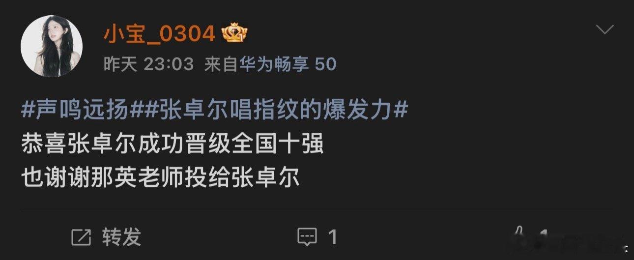 张卓尔 晋级声鸣远扬唱功在线还超有态度,舞台上活力四射超吸睛,每段表演都很有记忆点