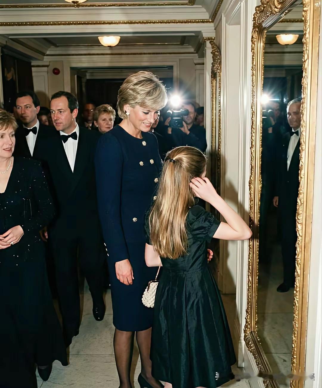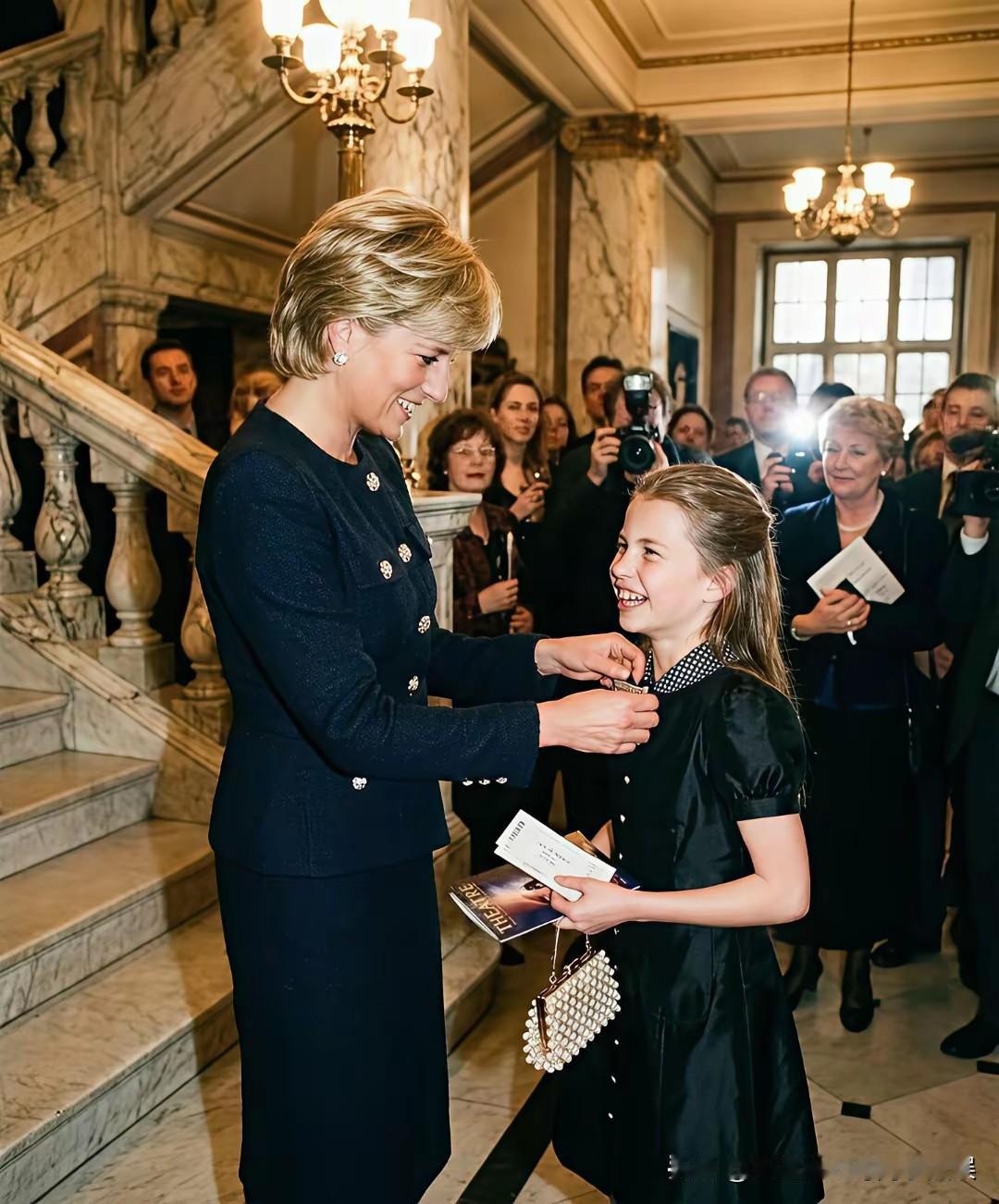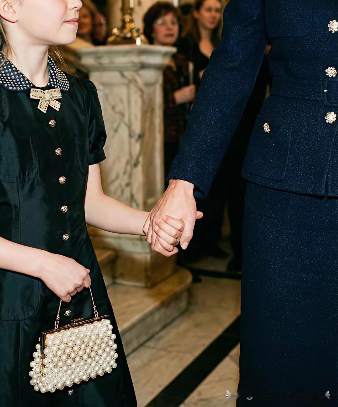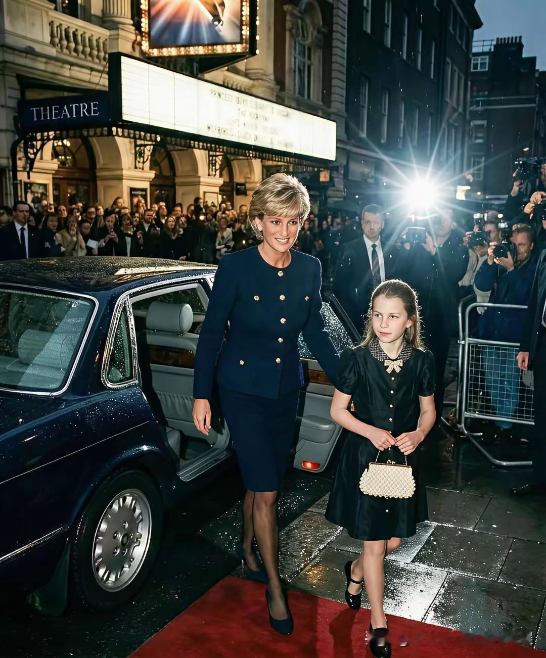 这一定是大家最想看到的画面,戴安娜王妃和孙女夏洛特公主! 捕捉到了一组来自网上的关于戴安娜王妃和孙女夏洛特公主的同框照片,虽然是网友AI生成的,但是却也是喜欢这对王室祖孙俩的粉丝最想看到的画面。 戴安娜王妃和夏洛特公主同样穿着一袭黑裙,祖孙俩手牵着手一起去看芭蕾舞表演,戴安娜王妃牵着孙女的手,不时给孙女整理衣襟,笑得一脸宠溺。 而乖巧可爱的夏洛特公主,笑得甜美可人,望着祖母戴安娜王妃的眼神,也满满都是对祖母的孺慕之情!