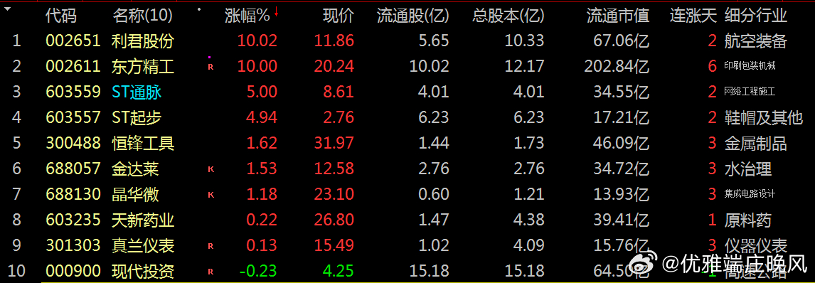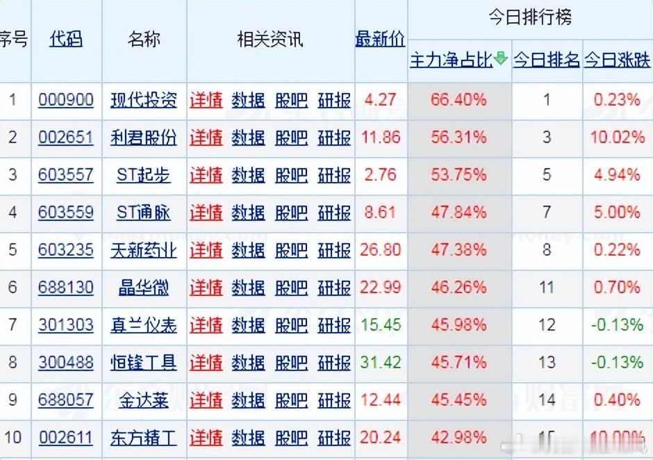 【财富晚茶】主力资金(12.01):追寻沪深北三市主力流入前10股票导语:作者系《网易号》优质财经领域创作者。曾经原创作者和知名网易号旅游领域创作者。大跨度行业等的写作,颇受网友喜爱。作品发表于2025.12.01.10:18 优雅端庄晚风。编者的话:追寻盘面:根据2025年12月01日市场数据:主力资金:流入前10股票:按流入金额从高到低排列。今天主题是:【财富晚茶】主力资金(12.01):追寻沪深北三市主力流入前10股票。与全国投资者和粉丝友友一起分享,殷切期待投资者精彩点评建议问题。一、主力资金:市场前三名佳股票002651 利君股份002611 东方精工603557 ST起步二、主力资金:流入前10名的股票最新K线图统计:即时日期:2025.12.01.10:18002651 利君股份 002611 东方精工 603557 ST起步 603559 ST通脉603235 天新药业 688130 晶华微 301303 真兰仪表 300488 恒锋工具688057 金达莱 000900 现代投资追寻盘面:根据2025年12月01日市场数据:主力资金:流入前10股票:按流入金额从高到低排列:三、今主旋律:前10名市场表现股最新K线图统计:即时日期:2025.12.01.10:18四、 创作不易:优质网易财经作者投资投机迷茫之中:给予尽可能有帮助:资本市场风险自负。(优雅端庄晚风《网易号》财经领域创作者和原创作者 违者必究)