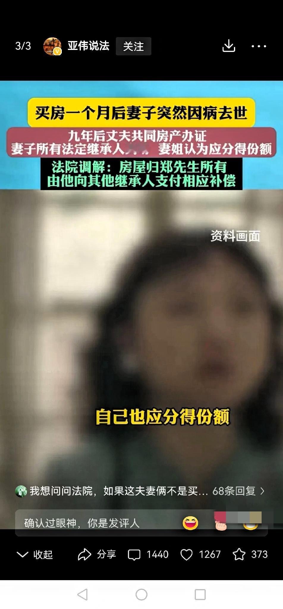 江苏昆山,男子和妻子打拼多年,终于买了套属于他们自己的房子。 本以为一家三口的幸福生活即将来临,万万没想到,买房一个月后,妻子竟突然因病去世。 男子几乎崩溃,无心再办理房产事宜,房子一直空置着。 如今儿子结婚了,需要这套房子。郑先生去房管局办理房产证,没想到妻姐带着一堆亲戚赶来阻止,并声称作为法定继承人,有权分这套房子。 郑先生无奈,只能将她们起诉到法院。经过审理,法院认定这套房子是郑先生和妻子婚后出资购买,为夫妻共同财产,郑先生应得50%,其余部分按法定继承人继承。 法院判决生效后,妻姐和亲戚见房子归郑先生所有,立刻转变态度,要求郑先生补偿他们。 没办法,郑先生只能带着补偿款与妻姐和其他继承人进行了庭外和解。 法定继承有依据,可亲情不该困于利益。多些理解让步,少些争执算计,才是对逝者与家人的善待。 如今郑先生心中感慨万千,亲情与金钱的冲突,让他倍感悲哀。 在我看来,继承不仅是法律程序,更该留一份人情温度——逝者若泉下有知,想必更愿看到家人和睦,而非为房产反目。 亲情在利益面前,为何如此不堪一击?大家怎么觉得呢?