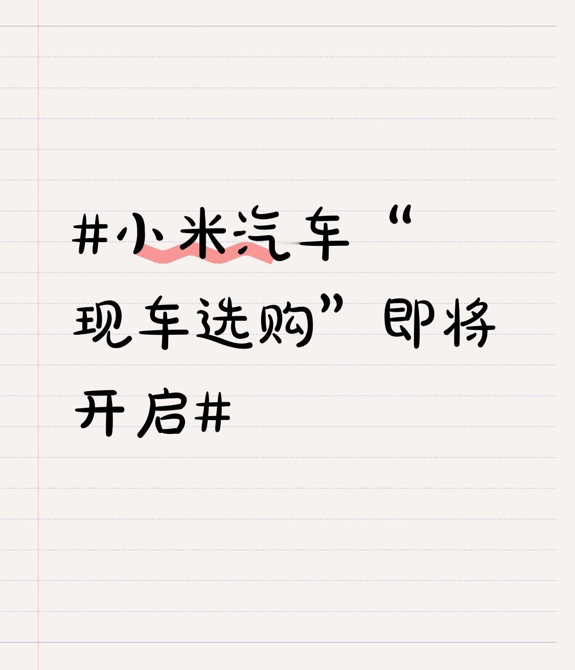 小米汽车“现车选购”即将开启 小米汽车要开放“现车选购”啦!12月1日消息,12月1日12时,已锁单未交付用户能优先改配同车型现车,12月3日10时面向全部用户开放。现车有全新现车、官方展车、准新车,都经过严格质检,部分经官方修复,且没登记过。 购买现车能快速提车,还有完整原厂质保和售后,部分车型有优惠。2025年12月26日24时前锁单,预计年底前提车。要是因小米汽车原因2026年才开票交付,能享跨年购置税补贴。雷军也发文官宣,想买车的朋友可以关注下。