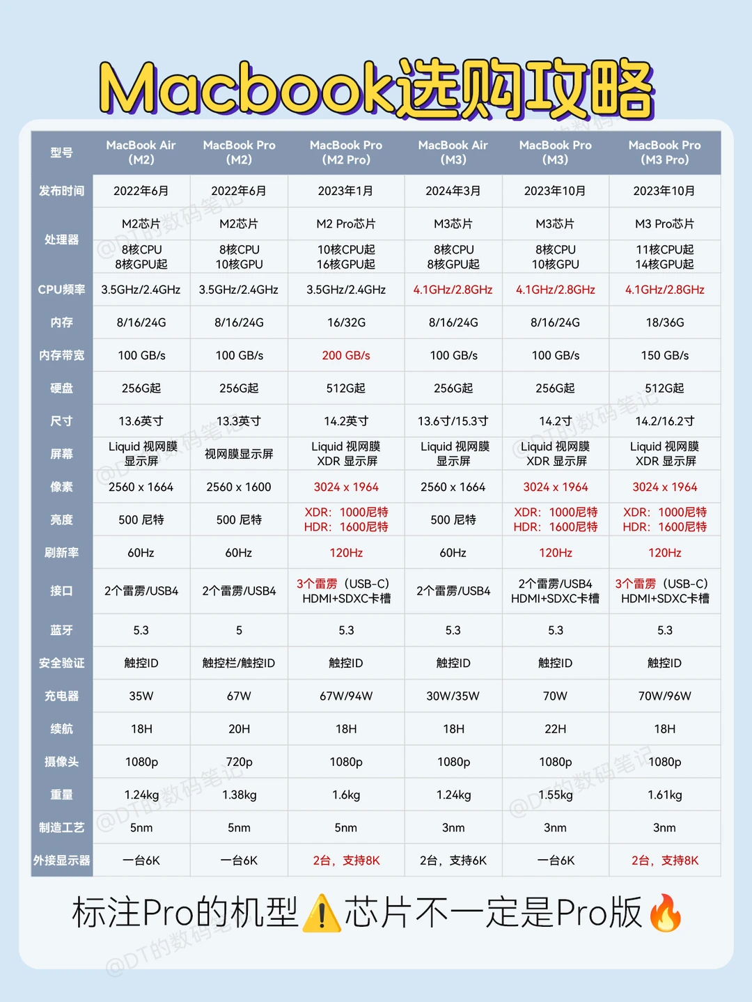 2️⃣标注Pro的机型,注意芯片不一定是Pro版的,宝子们一定要看清楚啦!各版本详细区别在图4~