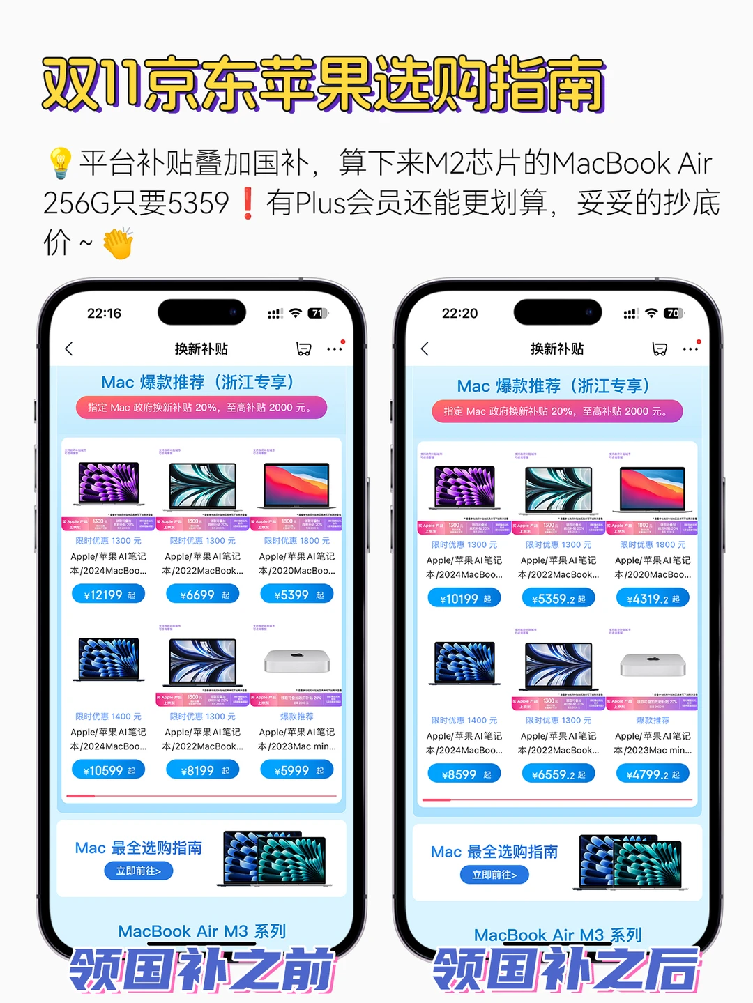 就今天!上京东🔍,【苹果特价】,进会场先领国补⚠️平台补贴再叠加国补,算下来一台M2芯片的MacBook Air 256G只要5359❗️有Plus会员还能更划算,妥妥的抄底价!