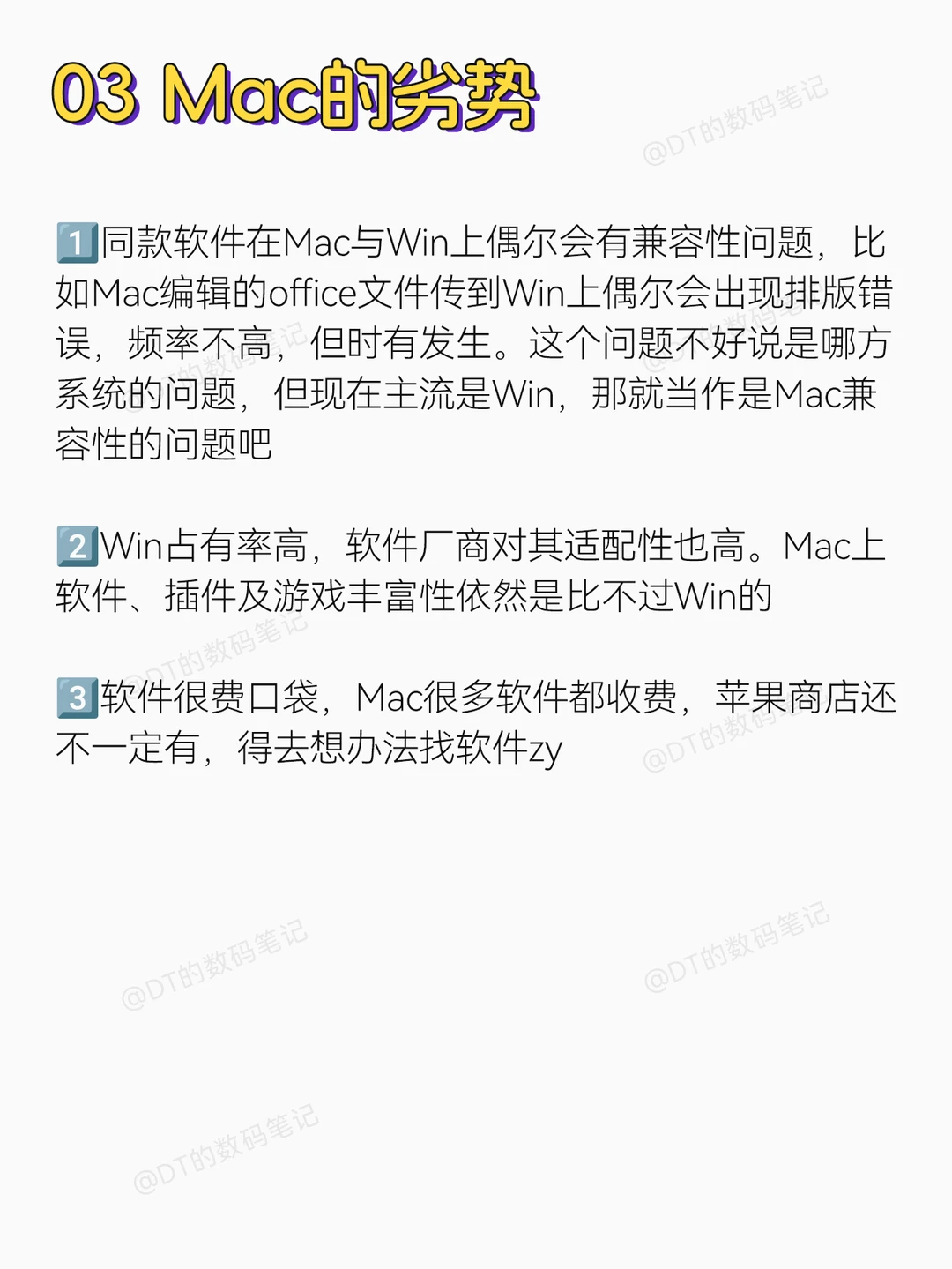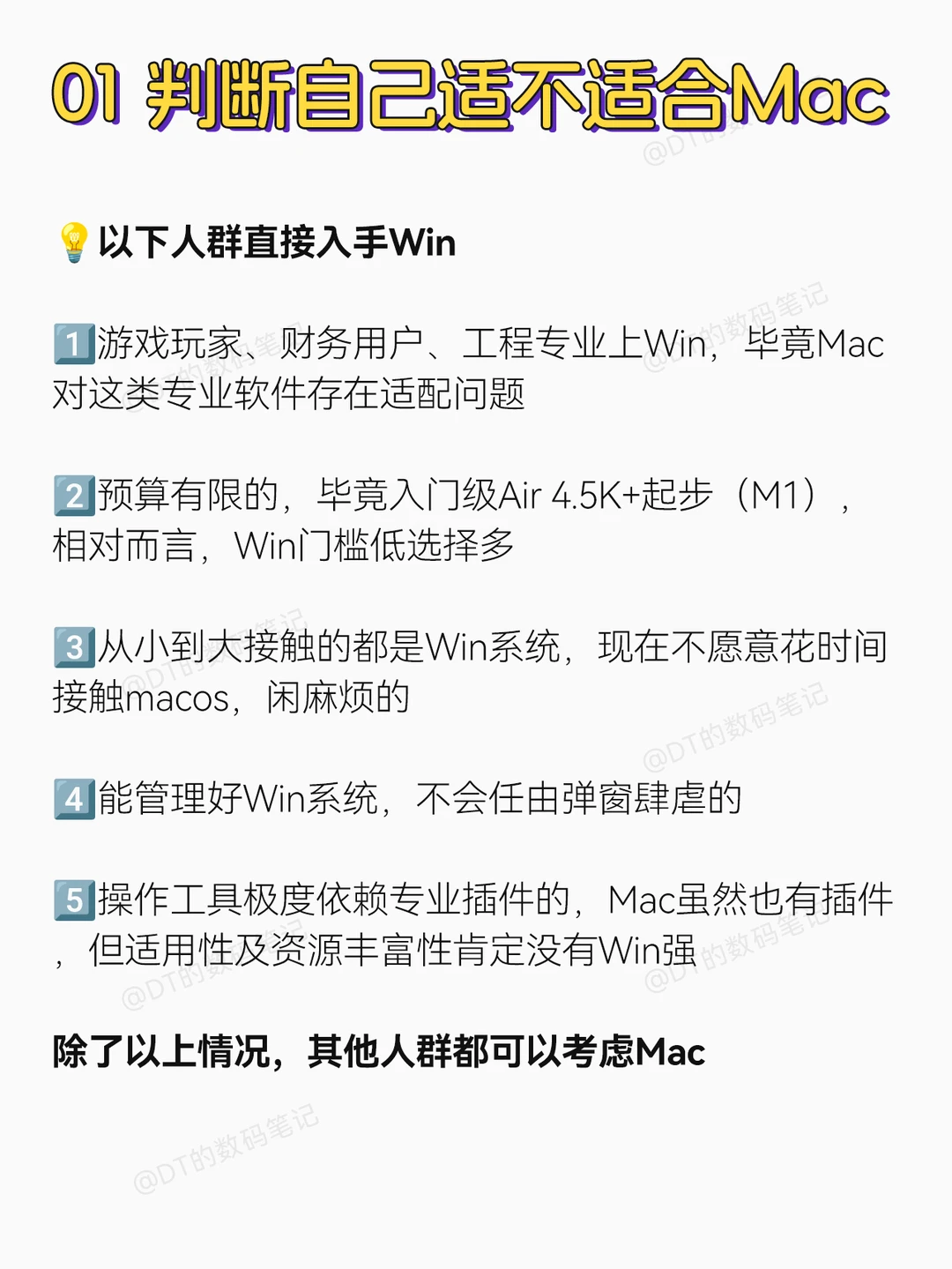 嗨~我是DT 今天总结过去几年使用Mac上的一些感受! 分享我对Mac的看法~ 1️⃣判断自己适不适合Mac? 2️⃣Mac的优势? 3️⃣Mac的劣势? 赶紧点❤️🌟,别到用的时候找不到啦🔥 最后别忘了关㊗️DT哦 还有更多数码小技巧等着和大家分享呢! 🎈我的主页还有许多实用的数码使用技巧,我们下期见~