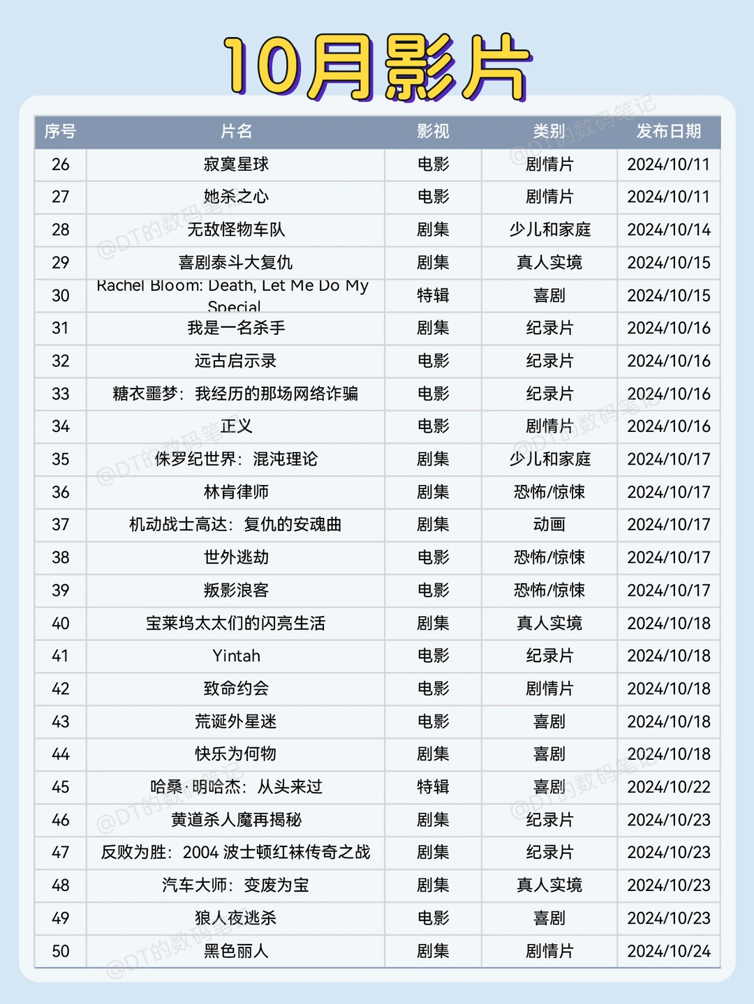 🧾10月即将上映新片